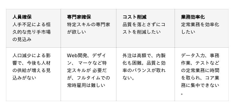 単なる労働力の提供にとどまらず、属人化を排除した「再現性の高い業務フロー」そのものを構築・提供できる点が大きな強みです。