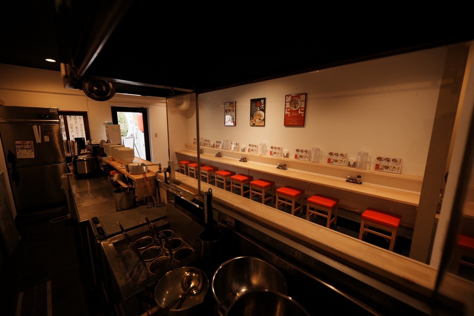 外観デザインでは、遠くから見た際に「ラーメン店であること」が直感的に伝わり、近づくにつれて「安心して入れそうだ」という信頼感を醸成し、最終的に店頭で「美味しそうだ」と感じてもらうことを重視しました。限られた予算の中でも、この入店までの導線設計を最優先とし、遠景よりも近景の体験価値に重点を置いた投資配分を行う設計戦略を採用しています。