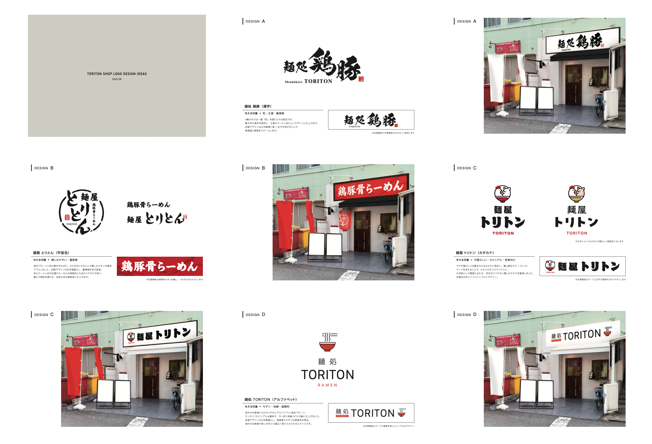 ロゴは白を基調に、ひらがな表記による親しみやすさを軸としつつ、黒の筆文字でラーメンの力強さや濃厚さを表現しています。さらに赤をアクセントカラーとして取り入れ、活気やエネルギーを感じられるデザインに仕上げました。
