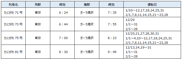 【ガーラ湯沢駅行きの東京発主な下り直通列車】