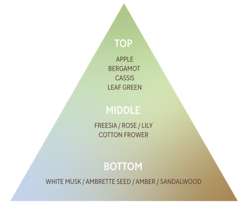 みずみずしいフローラル・フルーティーノートに、ムスク・アンバー・ウッディが包み込む清潔感と温もりが調和する穏やかな香り。