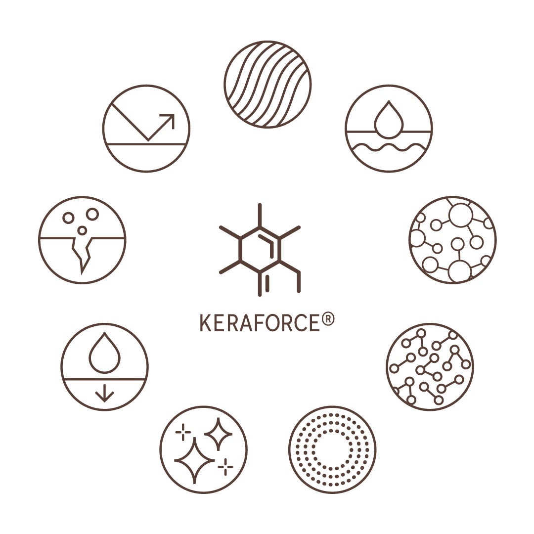 「毛髪構成成分※3」を中心とした、効果・効能に応じて設計された複数の独自処方「KERAFORCE(R)」が複合的に毛髪へアプローチ。