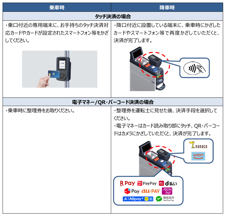 タッチ決済や電子マネー/QR・バーコード決済等の新しい乗車サービス開始に伴い、お客さまにご利用いただいているバスカードは一部併用期間を設けつつ、段階的に取り扱いを終了いたします。現在バスカードをお持ちの方や、これからバスカードをご購入される方はご注意ください。