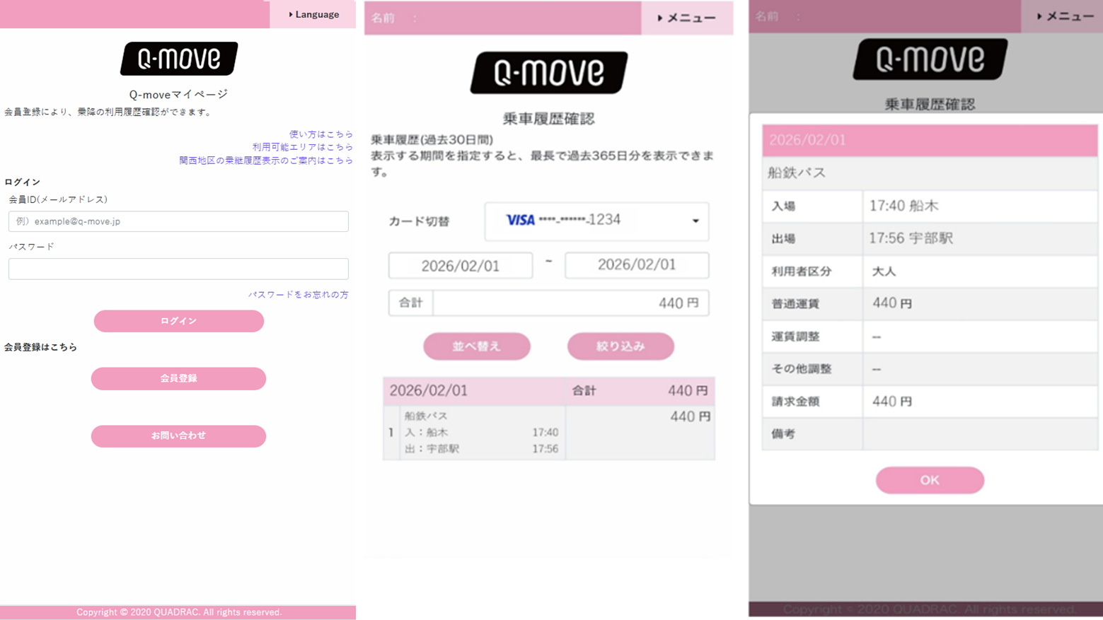交通事業者向け決済及び認証のプラットフォームを提供するQUADRACのQ-moveサイト(