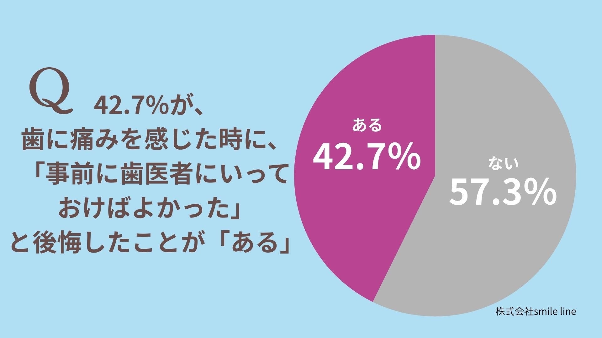【男女500人に調査】42.7%が、歯に痛みを感じた時に、「事前に歯医者にいっておけばよかった」と後悔したことが「ある」