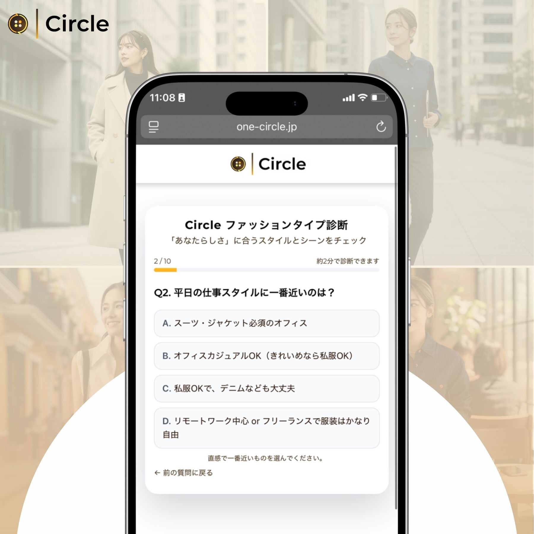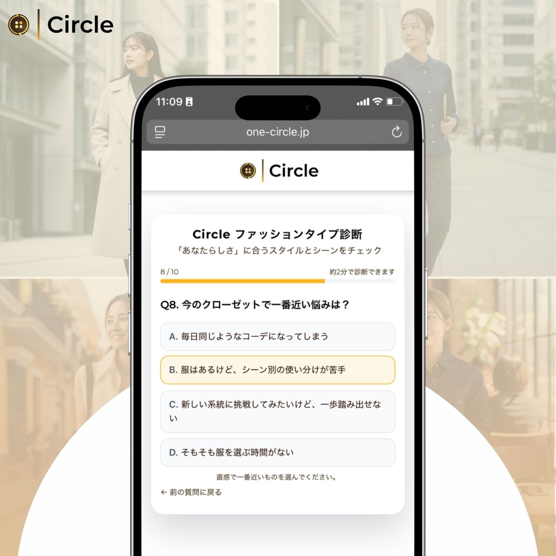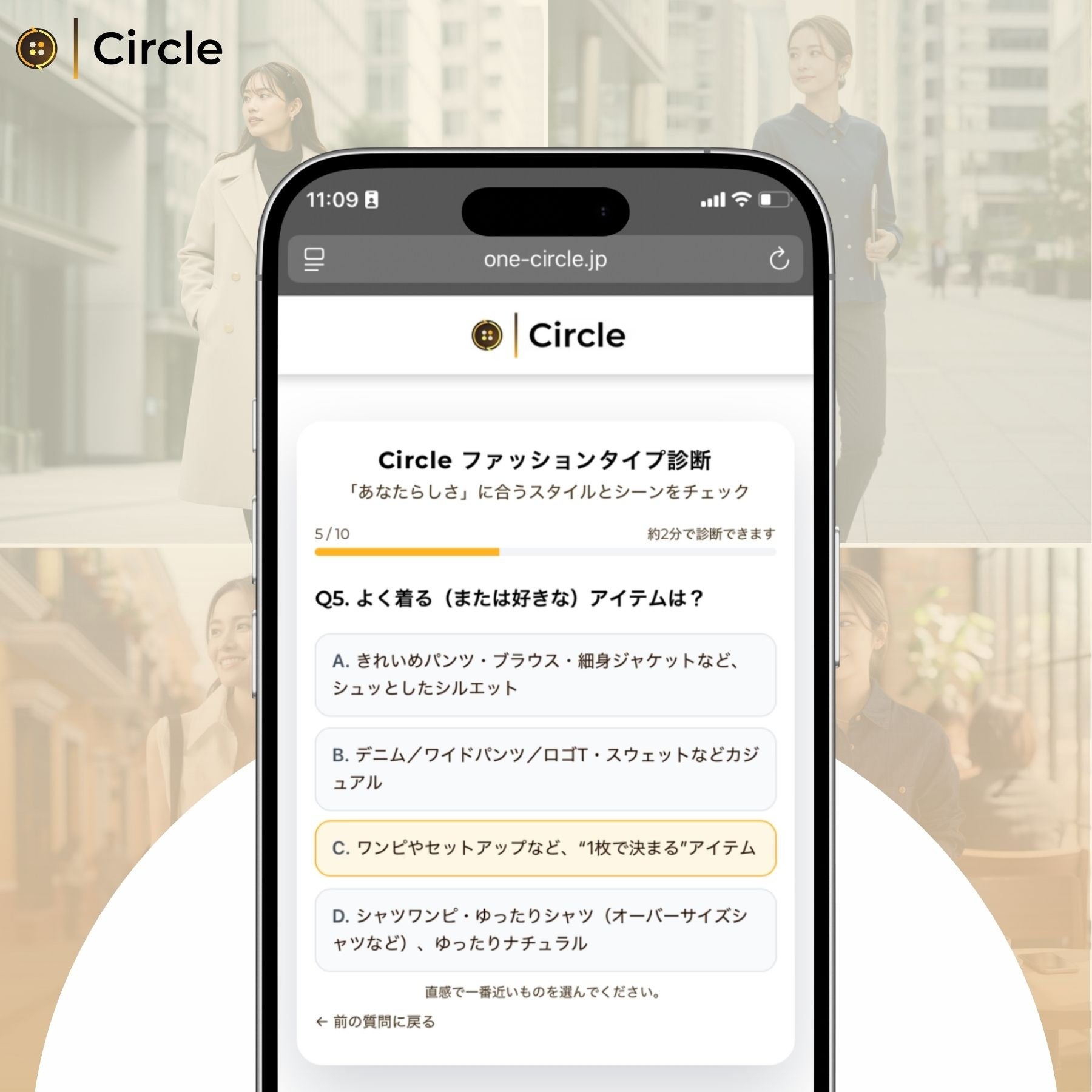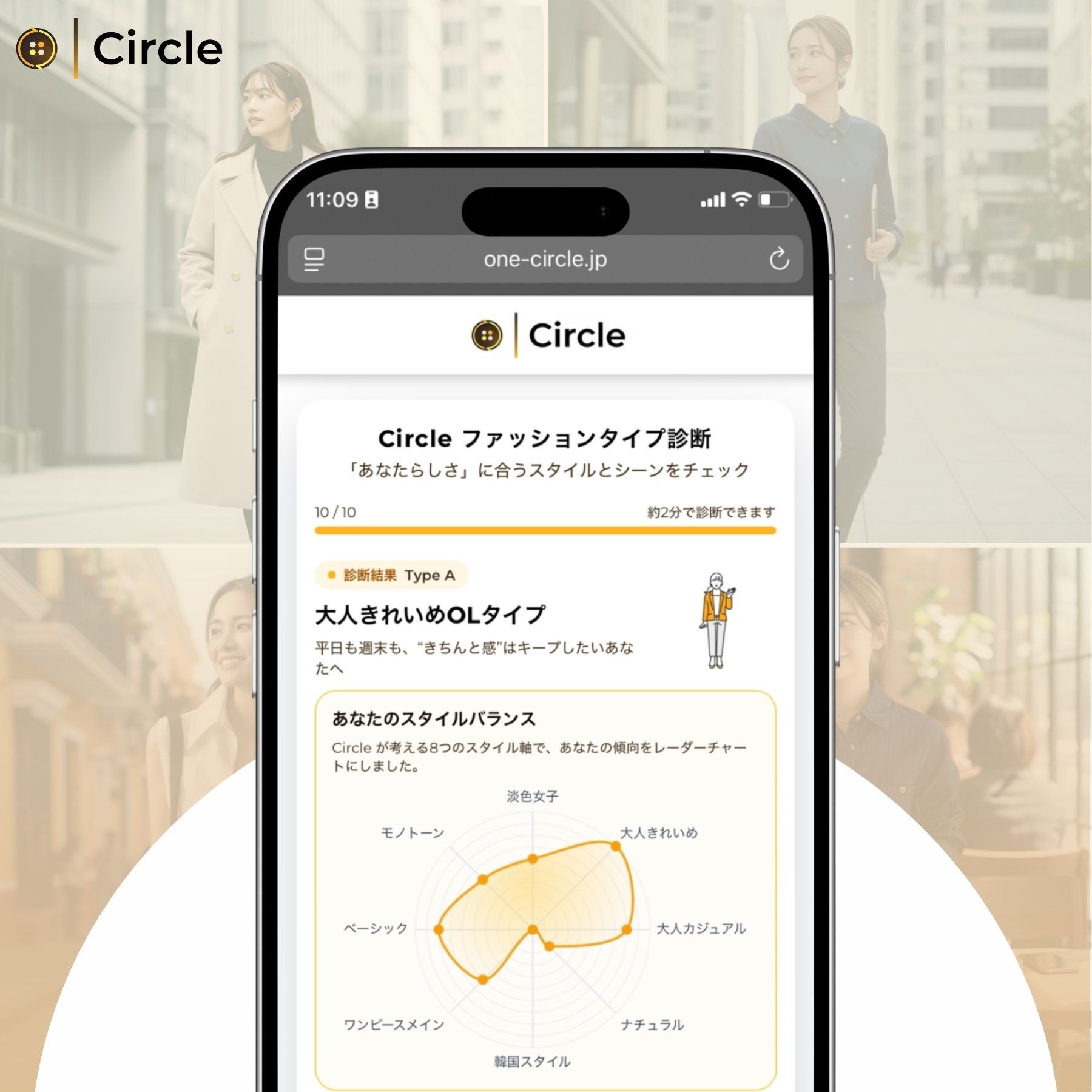Circleのファッションタイプ診断は、いくつかの簡単な質問に答えるだけで、自分のファッションの傾向・価値観・選び方の特徴を知ることができます。