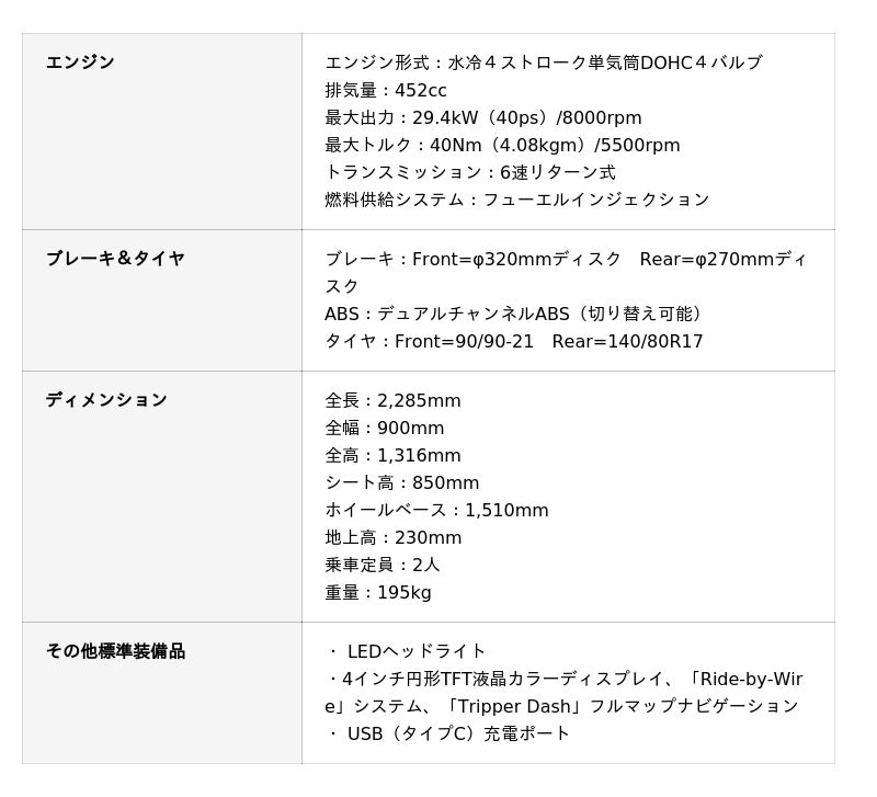 排気量452cc水冷単気筒DOHC4バルブの「SHERPA 450(シェルパ・ヨンゴーマル)」エンジンを搭載した、新世代HIMALAYANプラットフォームの先進的なパフォーマンスと機動力はそのままに、高地ルートから都市部まであらゆるシーンを軽快に走り抜けます。
