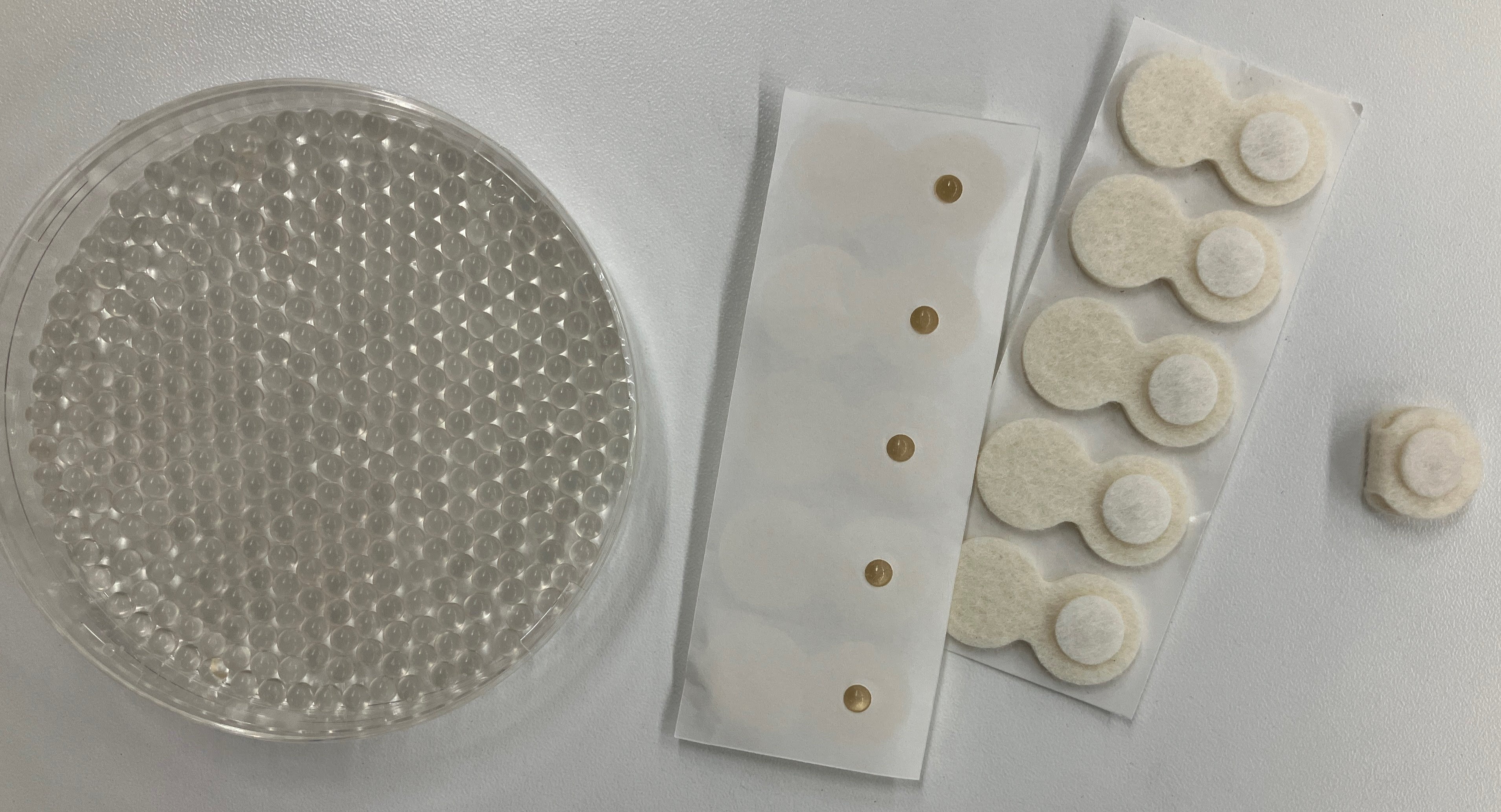 天然精油が入ったシームレスカプセルと、アイマスクに装着するための部材