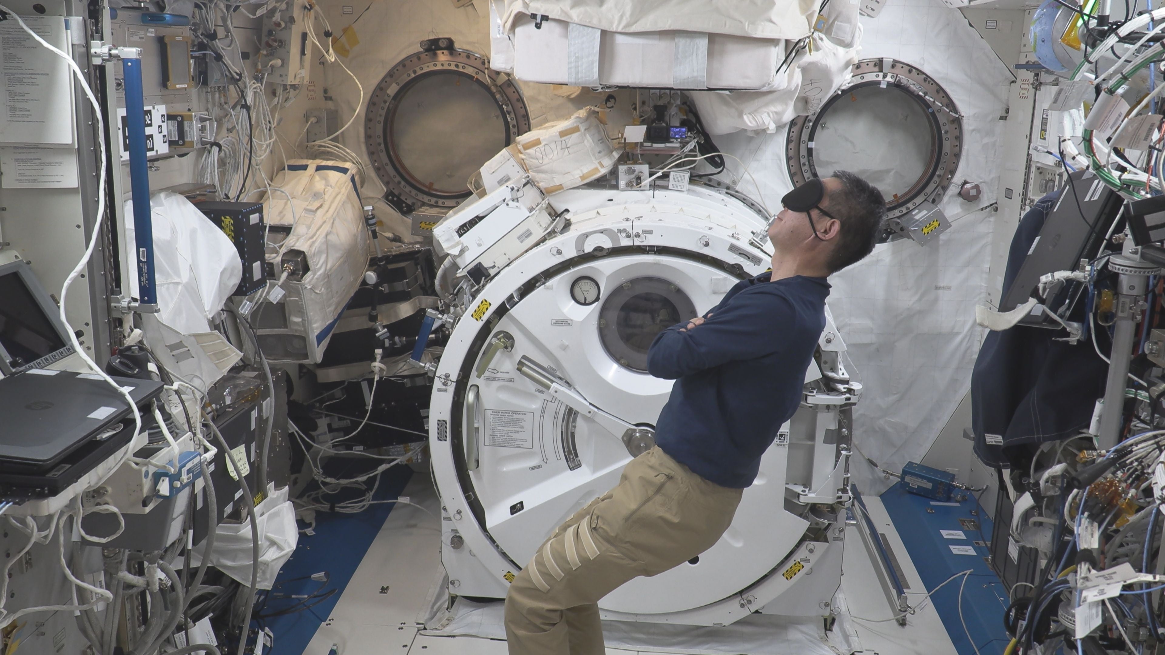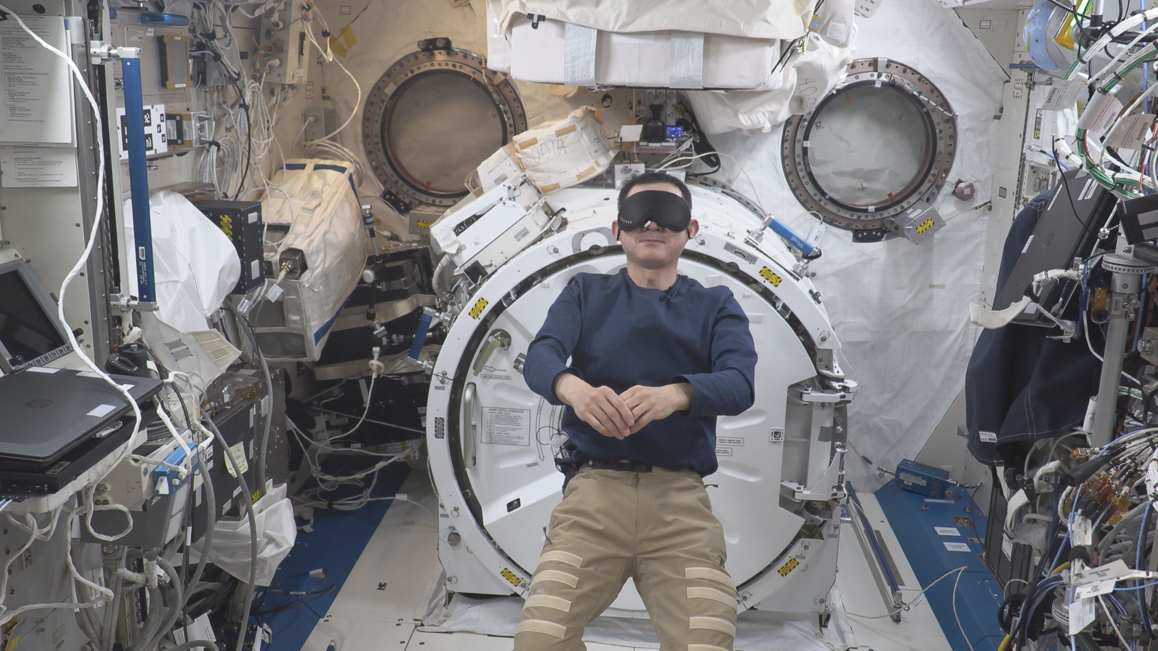 アイマスクを装着した油井宇宙飛行士