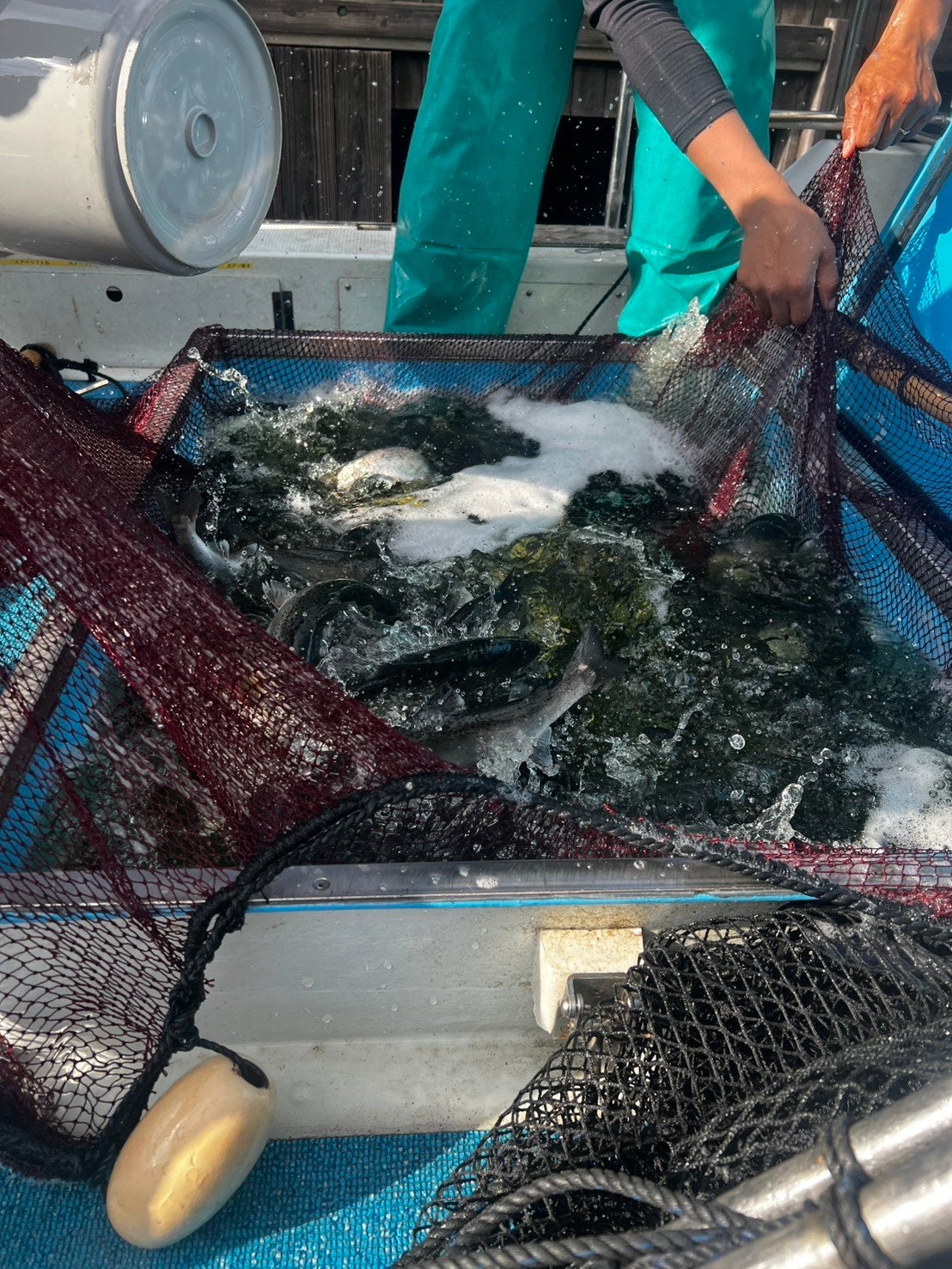高瀬水産では、2021年より当社の「サクラマス」を用いた試験養殖を開始し、本年で5シーズン目を迎えます。これまでの4年間で蓄積された養殖技術と実績を基に、2025年度は4,000尾規模での飼育を予定しており、より安定的な生産体制の構築を目指します。