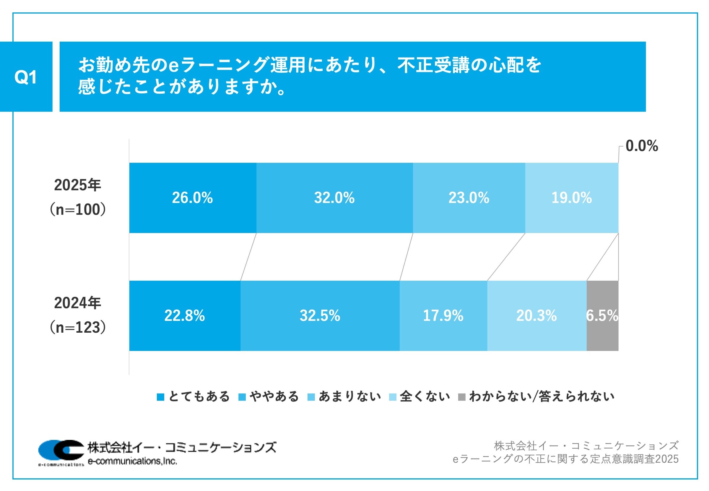 株式会社イー・コミュニケーションズ(本社:東京都港区、代表取締役:佐藤信也)は、eラーニング研修を導入している企業の人事・総務担当者100名を対象に、eラーニングの不正に関する定点意識調査2025を実施しましたので、お知らせいたします。