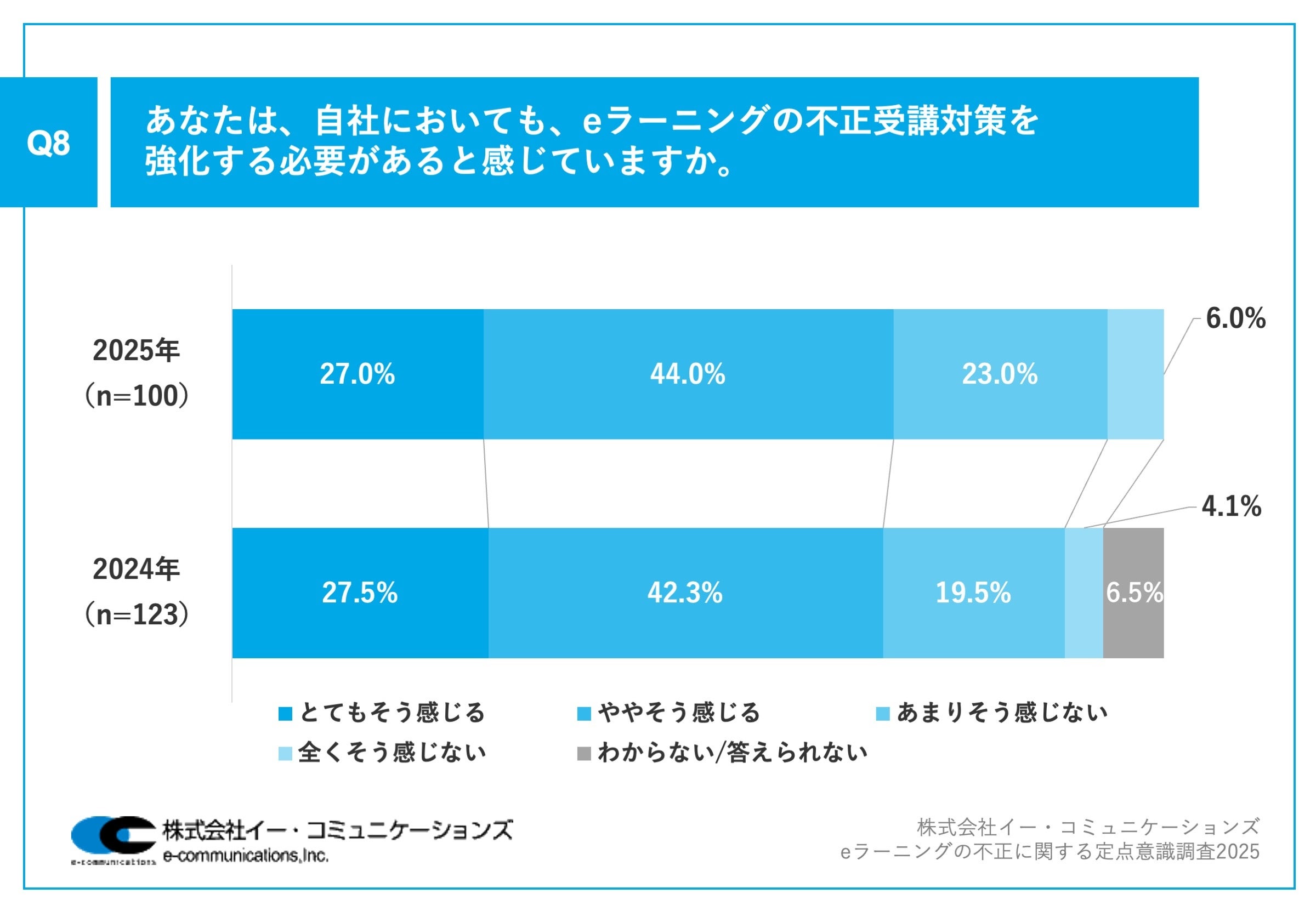 【定点】Q8. あなたは、自社においても、eラーニングの不正受講対策を強化する必要があると感じていますか。