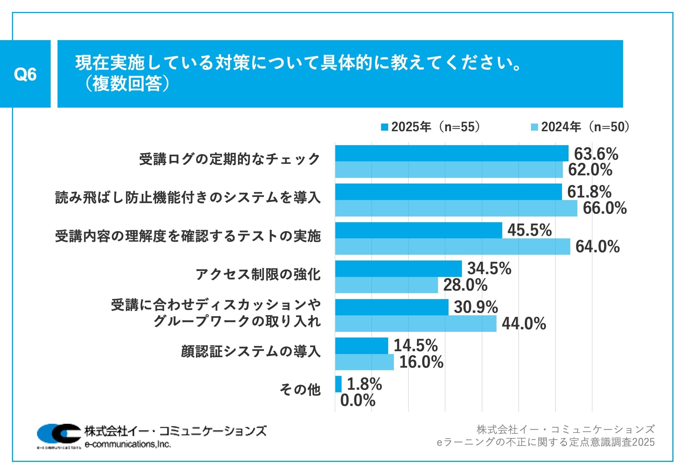 【定点】Q6. Q5で「対策を実施している」と回答した方にお聞きします。eラーニングの不正受講を防ぐために、現在実施している対策について具体的に教えてください。(複数回答)