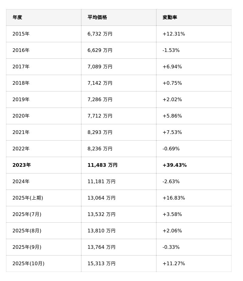 6,732万円 → 1億5,313万円 と、わずか10年で 2.27倍へ上昇。