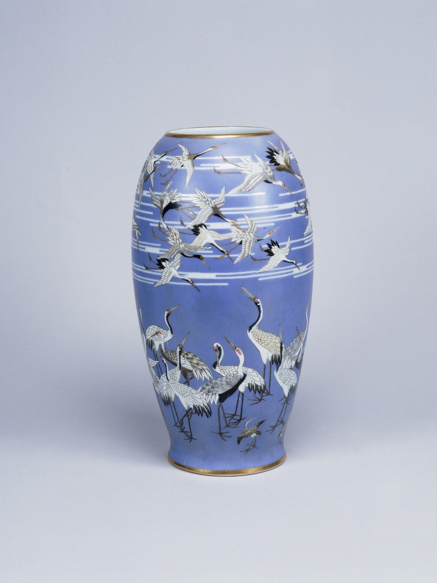 井村陶器店/川本桝吉(初代または二代)《色絵群鶴図花瓶》明治時代(19世紀)、愛知県陶磁美術館蔵