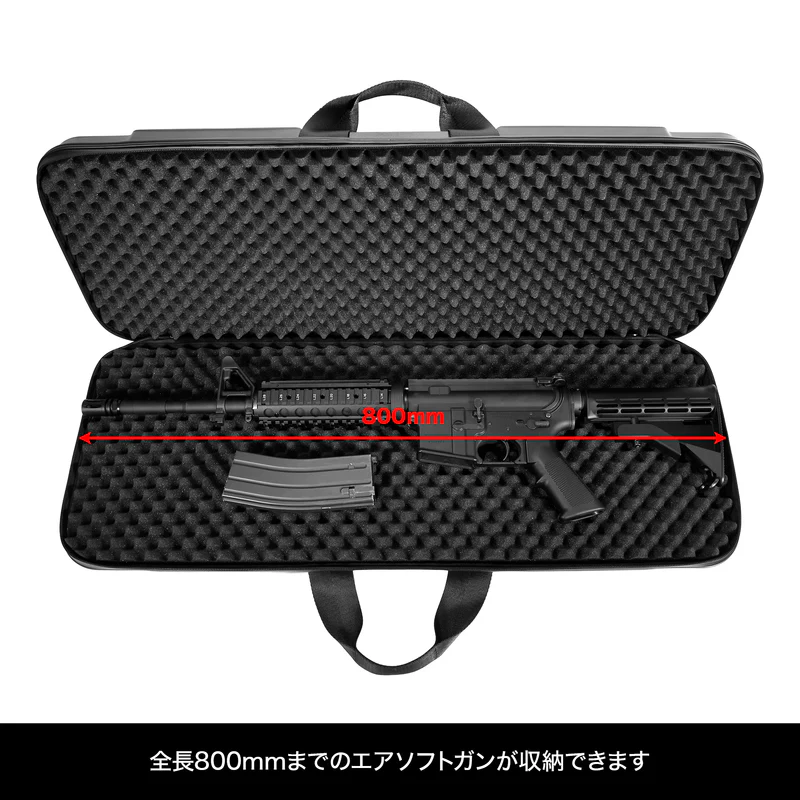 全長800mmまでのエアソフトガンに対応。電動ガン、ガスガン、ライフルなど、サバゲーで代表的なモデルを幅広く収納できます。