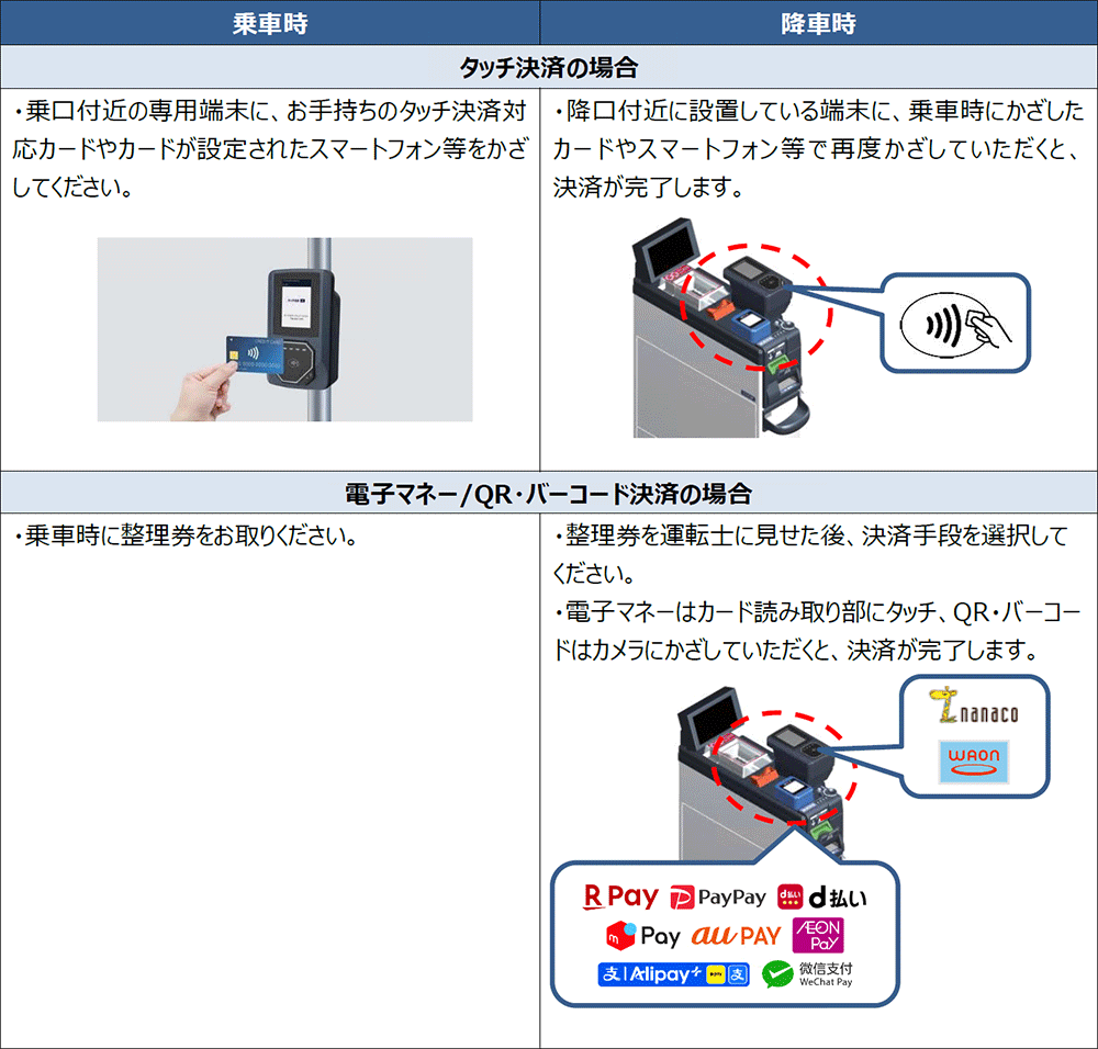 タッチ決済や電子マネー/QR・バーコード決済等の新しい乗車サービス開始に伴い、お客さまにご利用いただいているバスカードは一部併用期間を設けつつ、段階的に取り扱いを終了いたします。現在バスカードをお持ちの方や、これからバスカードをご購入される方はご注意ください。