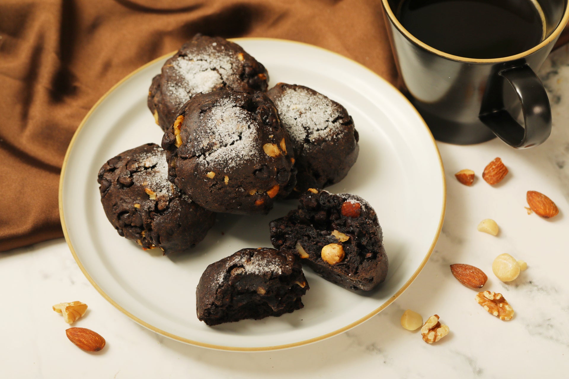 上げました。甘すぎないブラックココアの風味に、チョコチップの甘みとナッツのカリカリ