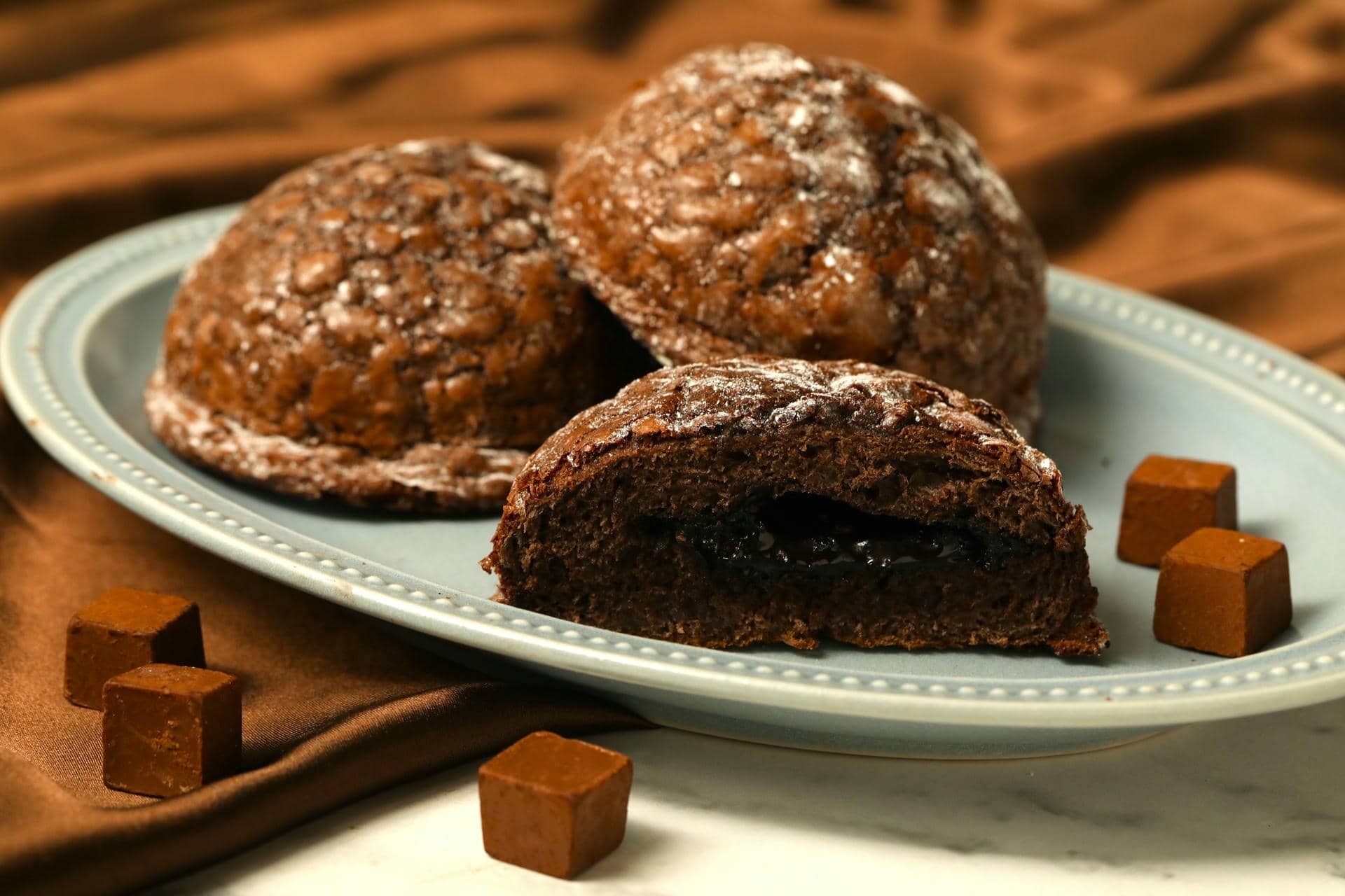 こだわり:ブラックココアを練りこんだ生地で生チョコを包んだ、まさに“チョコづくし”なパン。表面