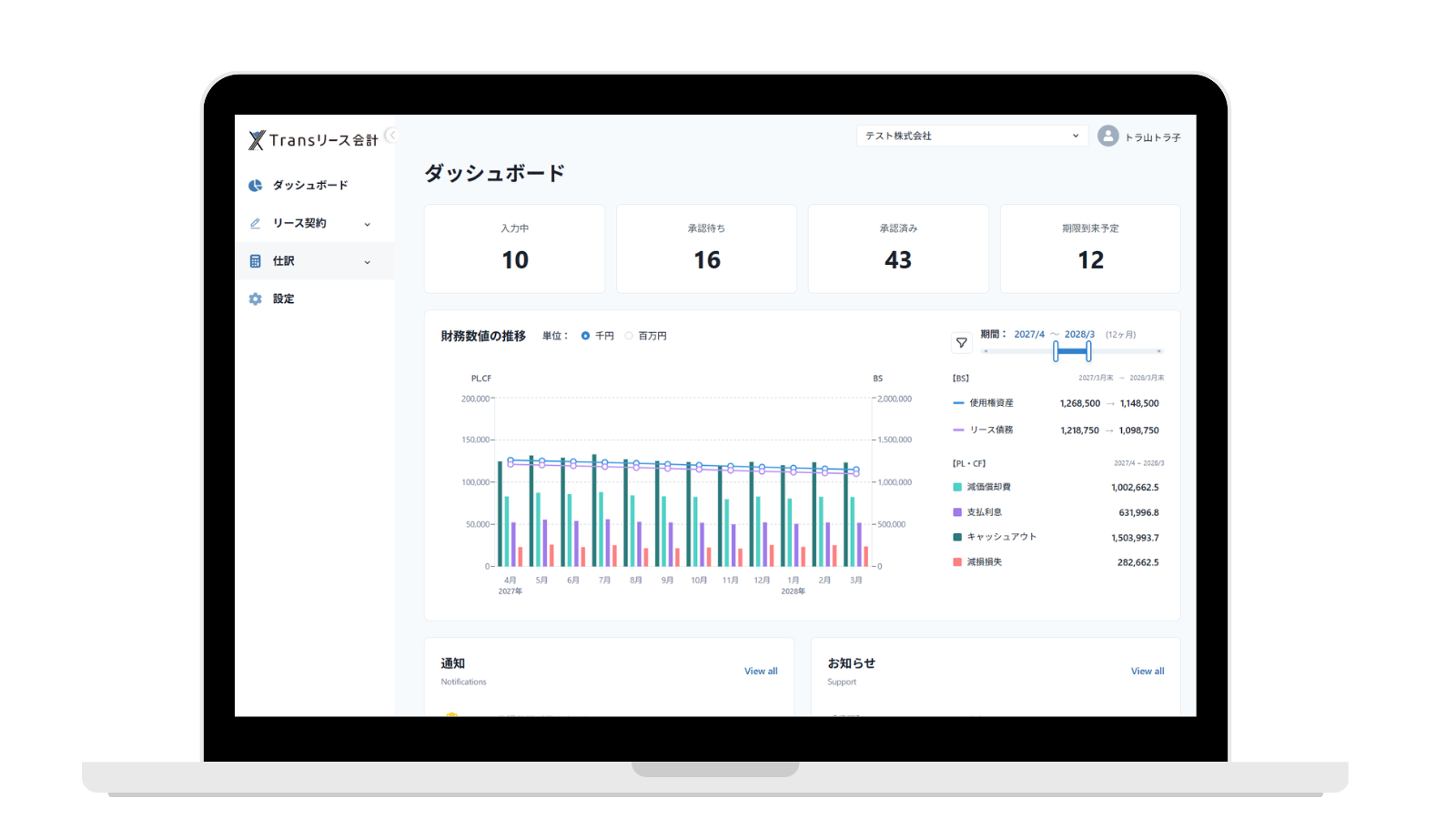 「Transリース会計」は実務で頻出する取引パターンや、会計監査対応に配慮した実務目線で設計された新リース会計基準に特化したシステムです。