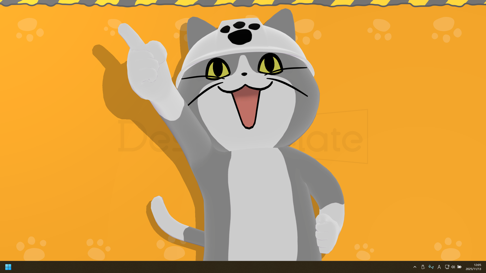 Desktop Mate版の仕事猫は、「ヨシ!」の指差呼称はもちろん、指差し確認など、仕事猫らしい特徴的な動きを細部まで再現。ゆるくて愛らしい仕草で、デスクトップを賑やかにします。