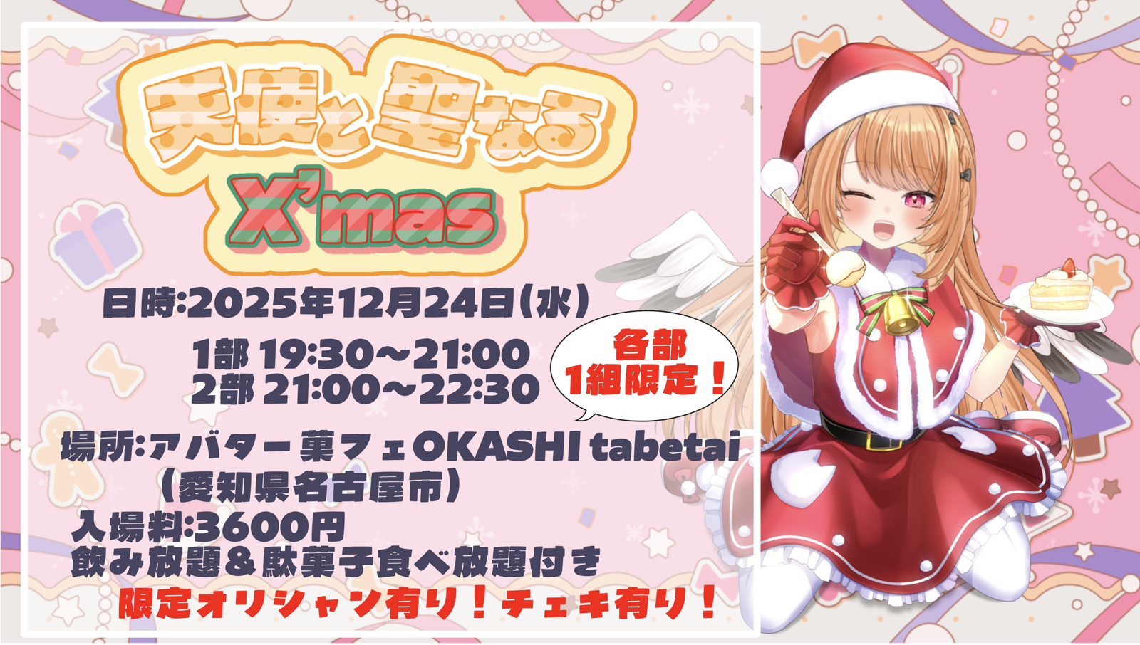 - 開催日:2025年12月24日(火)- 形 態:完全予約制(少人数制、90分2部入れ替え制を予定)- 会 場:アバター菓フェ OKASHI tabetai(愛知県名古屋市北区・SAKUMACHI商店街内)- 料 金:お一人様 3,600円(税込) 飲み放題・駄菓子食べ放題つき- 定 員:各部1組限定(最大2名まで)