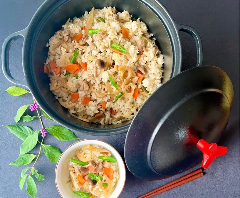 高い熱伝導性により、食材の水分を活かした無水調理が可能です。野菜の甘みや肉の旨味を逃さず、栄養価の高い料理を短時間で作ることができます。美味しいお米も炊くことができ、熱をじっくり均等に伝えるため、米の芯までふっくら炊きあがります。
