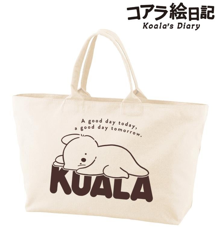 コアラさんのイラスト、キャッチコピーの「今日もいい日、明日もいい日。」をBIGなジップトートバッグに仕上げました。