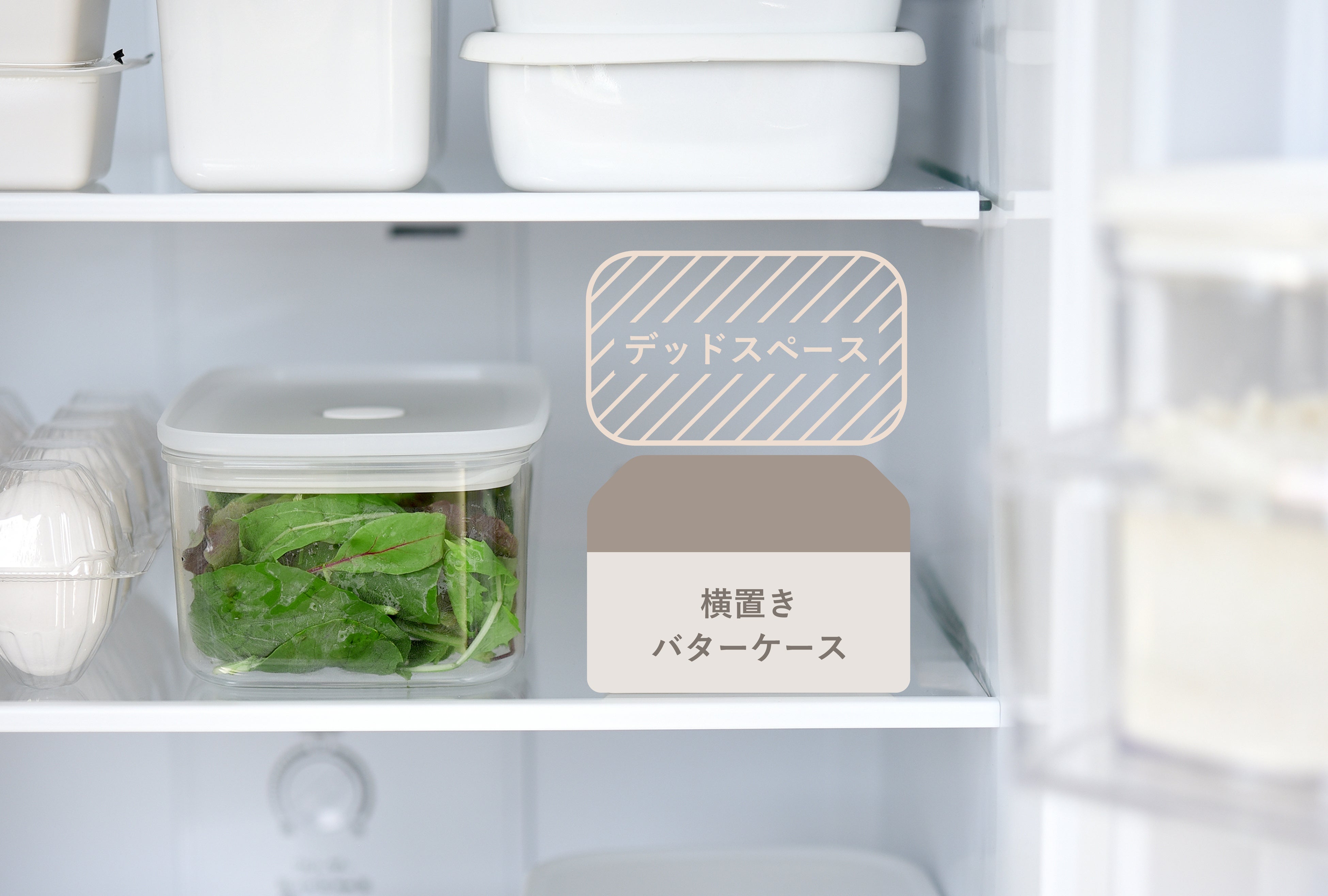 冷蔵庫内で意外と場所を取ってしまうバターケース。そこでひらめいたのが、バターケースを“立てる”というアイデア。
