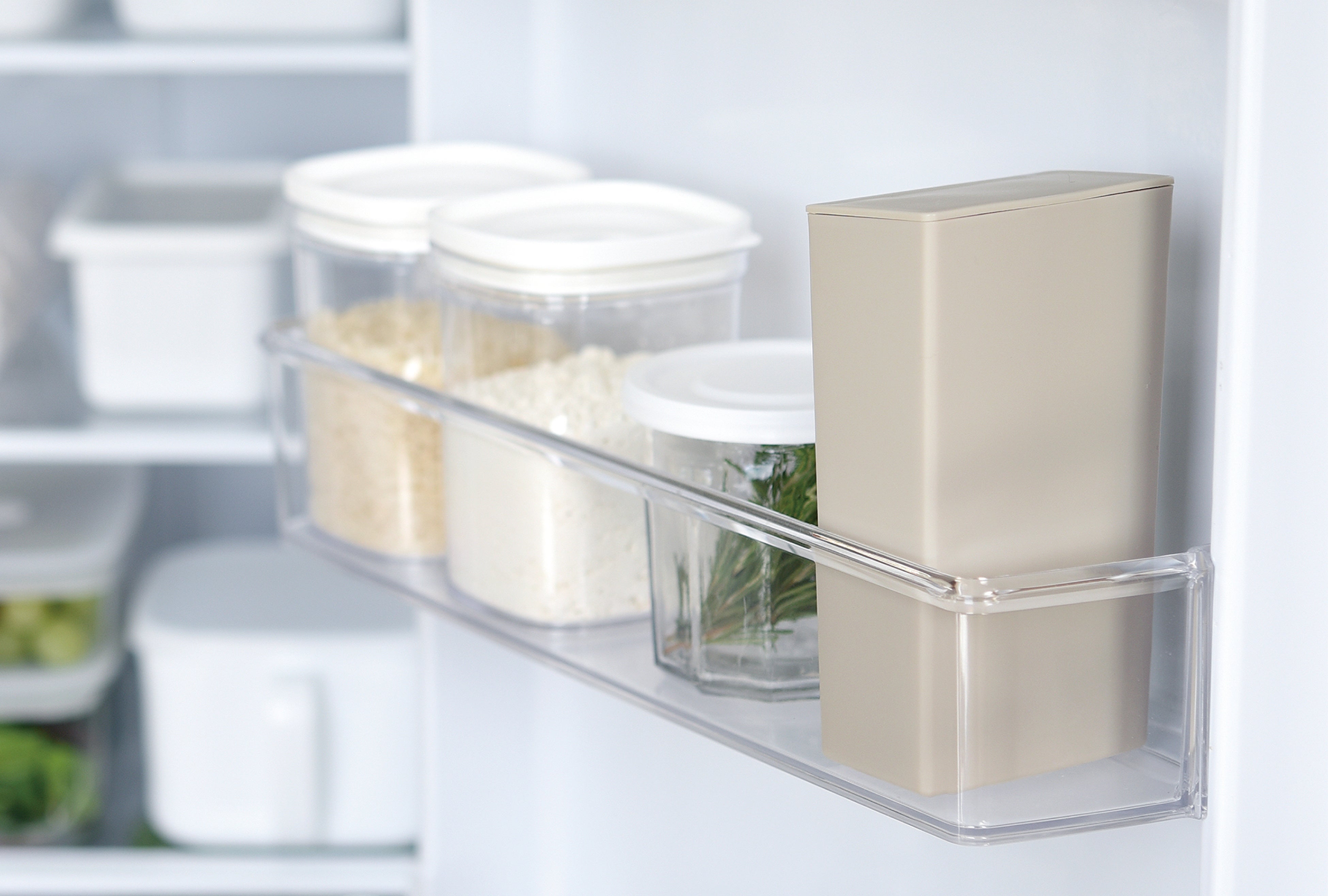 ドアポケットに“縦置き”してすっきり収納。銀紙のまま保存もでき、バターの新鮮さを保てます。付属のカッターで使いたい量を調節して切り分けることができます。