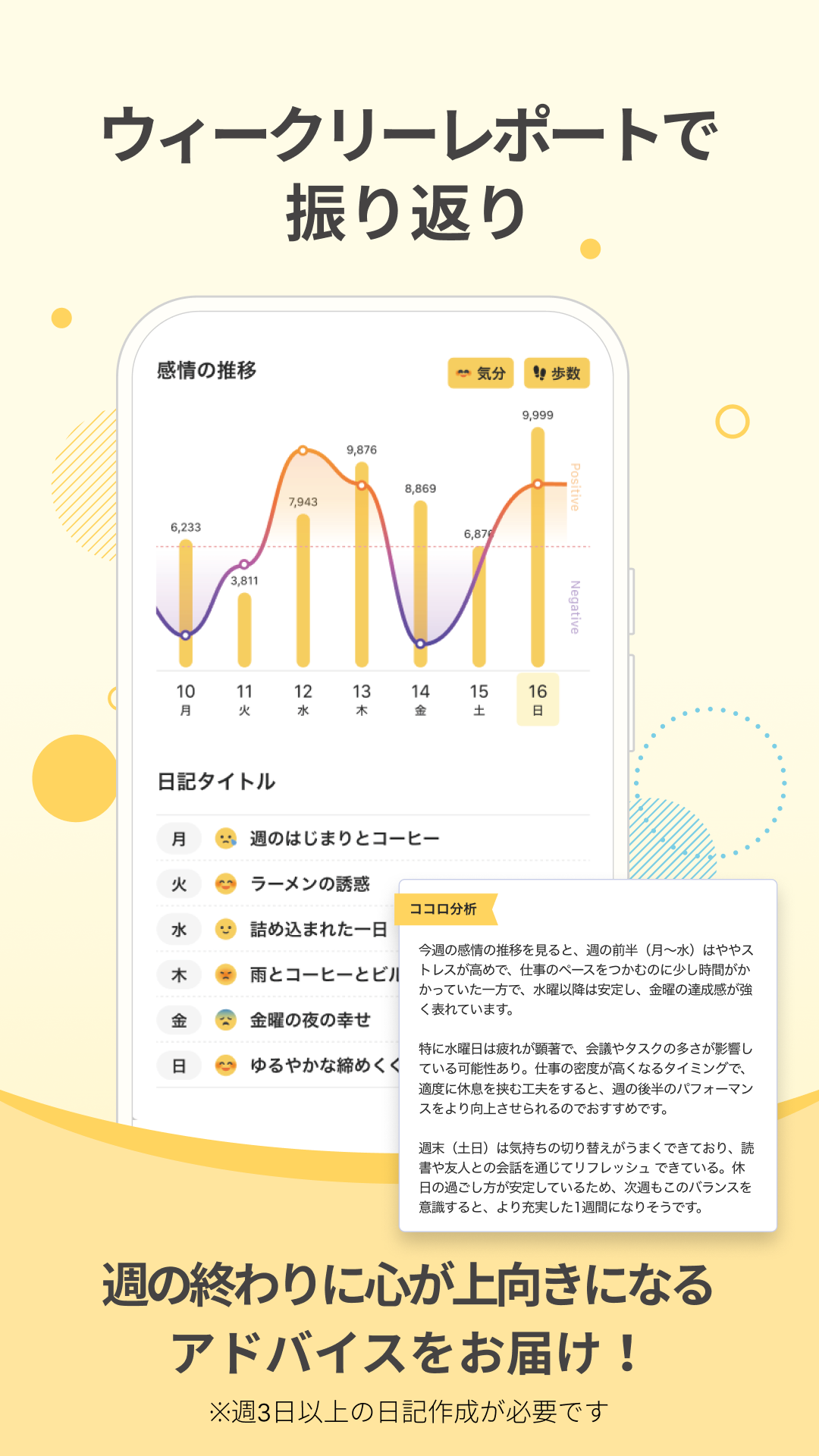 「Yell-U」では、週単位での振り返りも自然に習慣化できます。