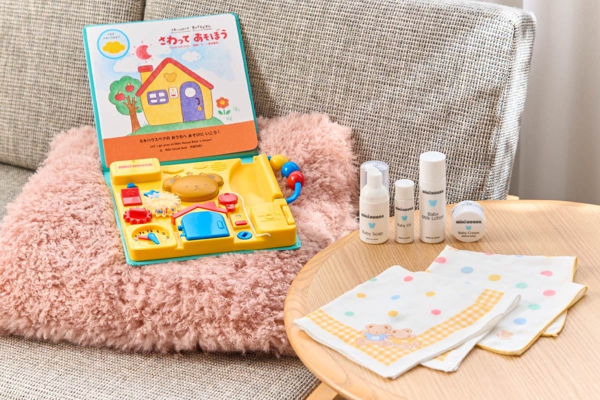 お子さまわくわくセットミキハウスのキャラクターがモチーフになった役立つ実用的なアイテムをご用意いたしました。