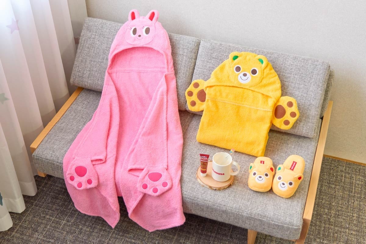 バスポンチョセット(BOX入り)お子さまとのご宿泊をさらに快適にお過ごしいただける、バスポンチョ、バスミトン、ハンドタオルの3点セットをご用意いたしました。