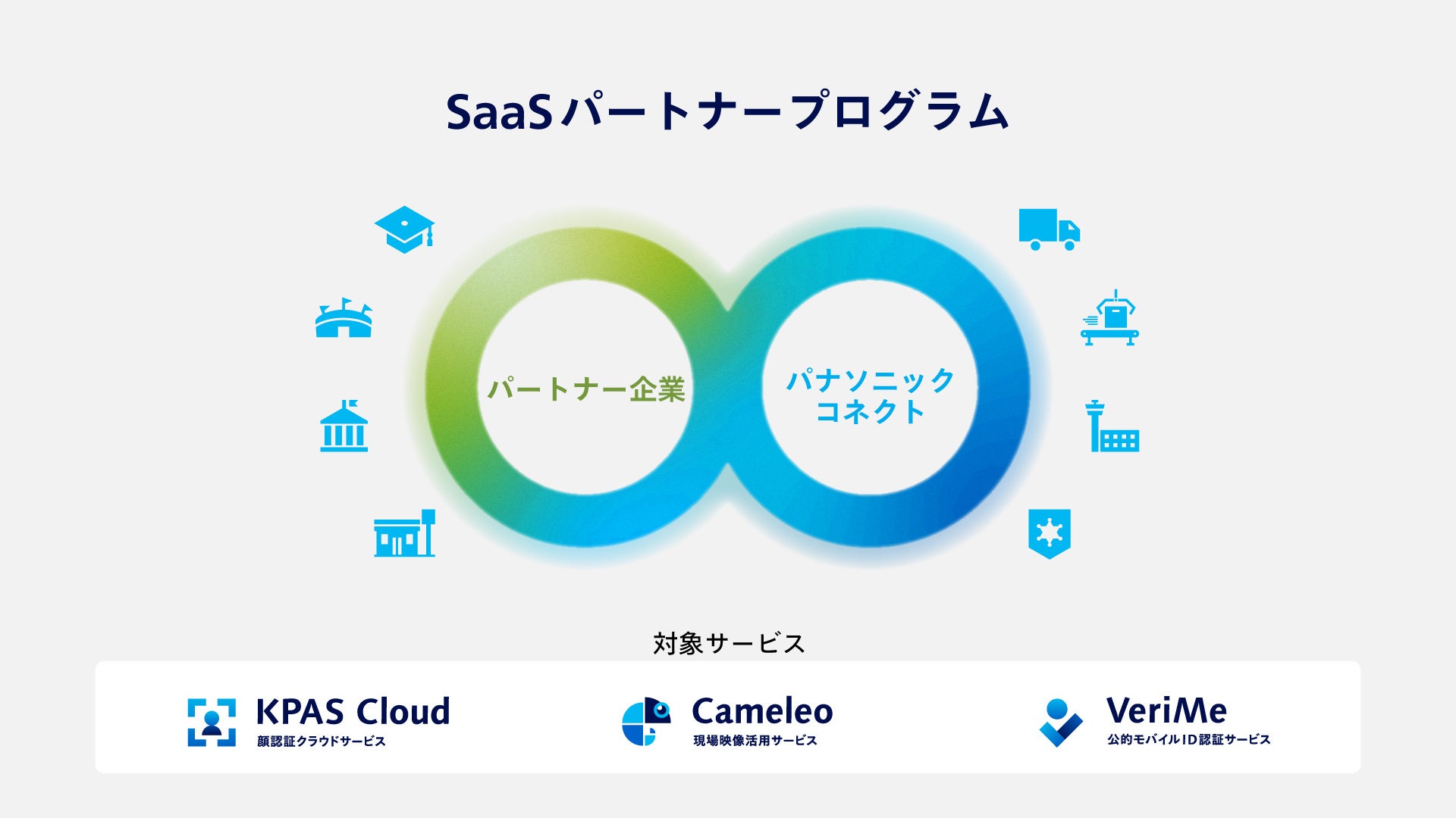 パナソニック コネクトはこれまで、顔認証クラウドサービス「KPASクラウド」(※2)や、現場映像活用サービス「Cameleo」(※3)などのSaaSを提供し、販売パートナー企業や自社サービスに組み込み商品開発をする企業に向けて、新たな価値創造を支援するコンテンツやサポートメニューを提供するパートナープログラムを、各サービスで提供してきました。パートナープログラム加入企業との共創で新たなサービスも生まれ、社会に実装されています。