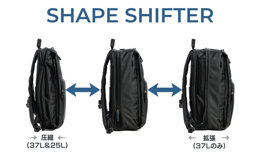 37L、25Lの2つのサイズ展開で発売される「シェイプシフター」シリーズは、フォトグラファーの撮影や移動、そして仕事のやり方に合わせて、しっかりと対応します。