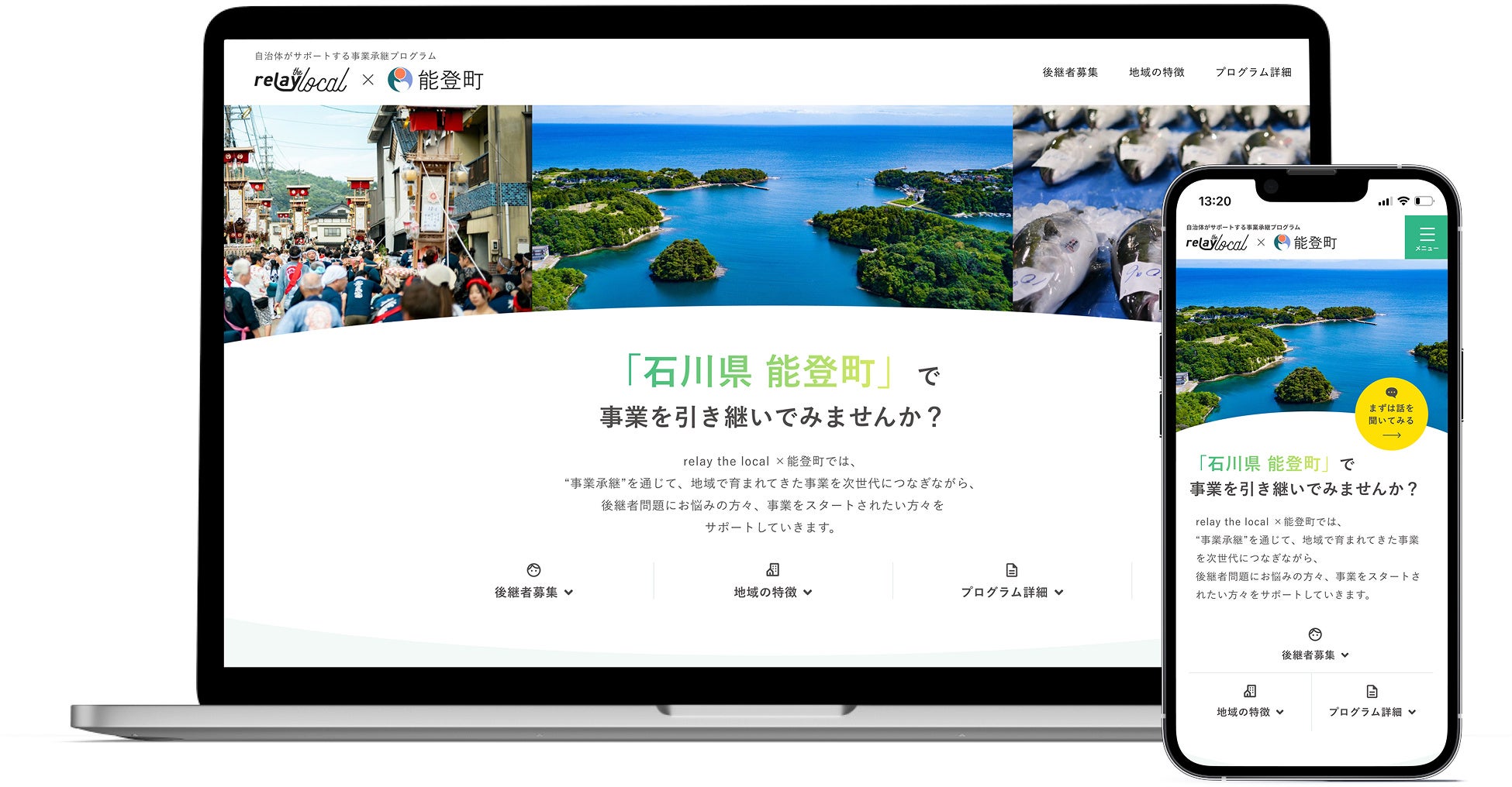 【自治体向け事業承継支援サービス】オープンネーム事業承継「relay(リレイ)」、石川県能登町に特化した後継者募集の特設ページ「relay the local 能登町」を開設