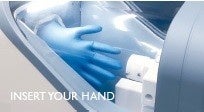 特許技術:外的接触なく手袋を自動装着する装置専用消耗品の手袋はメディカルグレードのニトリル素材を採用