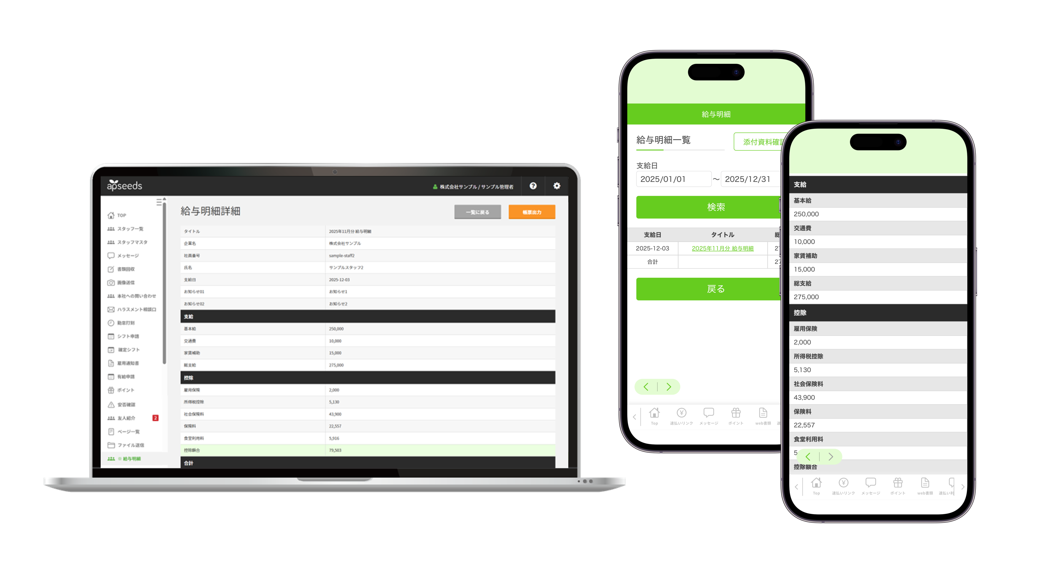 『web給与明細サービス』は毎月の給与明細書を電子化し、アプリ・webで発行できるサービスです。