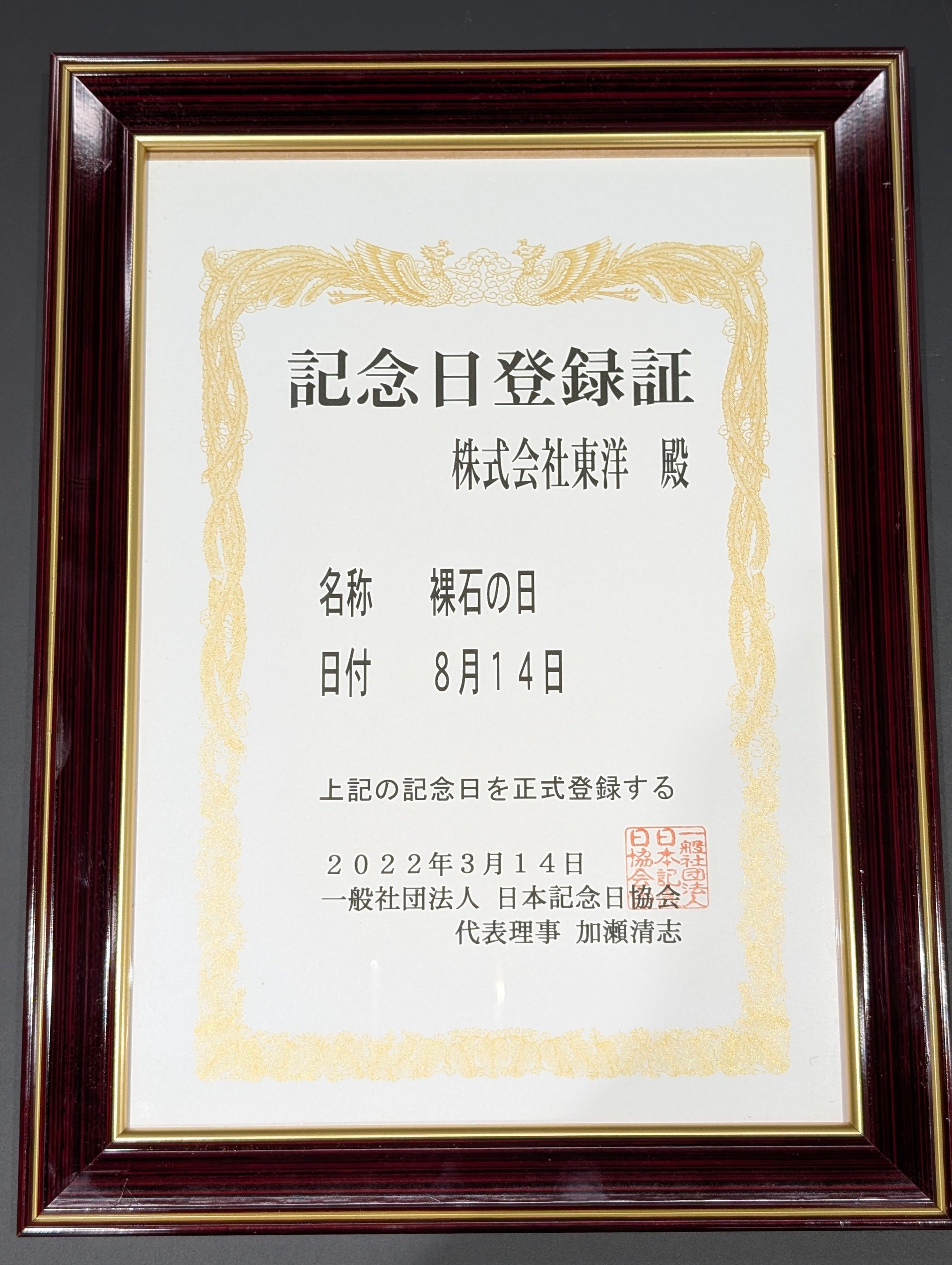「裸石の日」は、東洋ルースが宝石をジュエリーに加工する前の“裸石(ルース)”の魅力を広く知っていただくために、「裸石(はだかいし/ルース)」を8(はだか)14(いし)にかけて、8月14日に記念日を制定し、一般社団法人日本記念日協会に正式に認定を受けました。