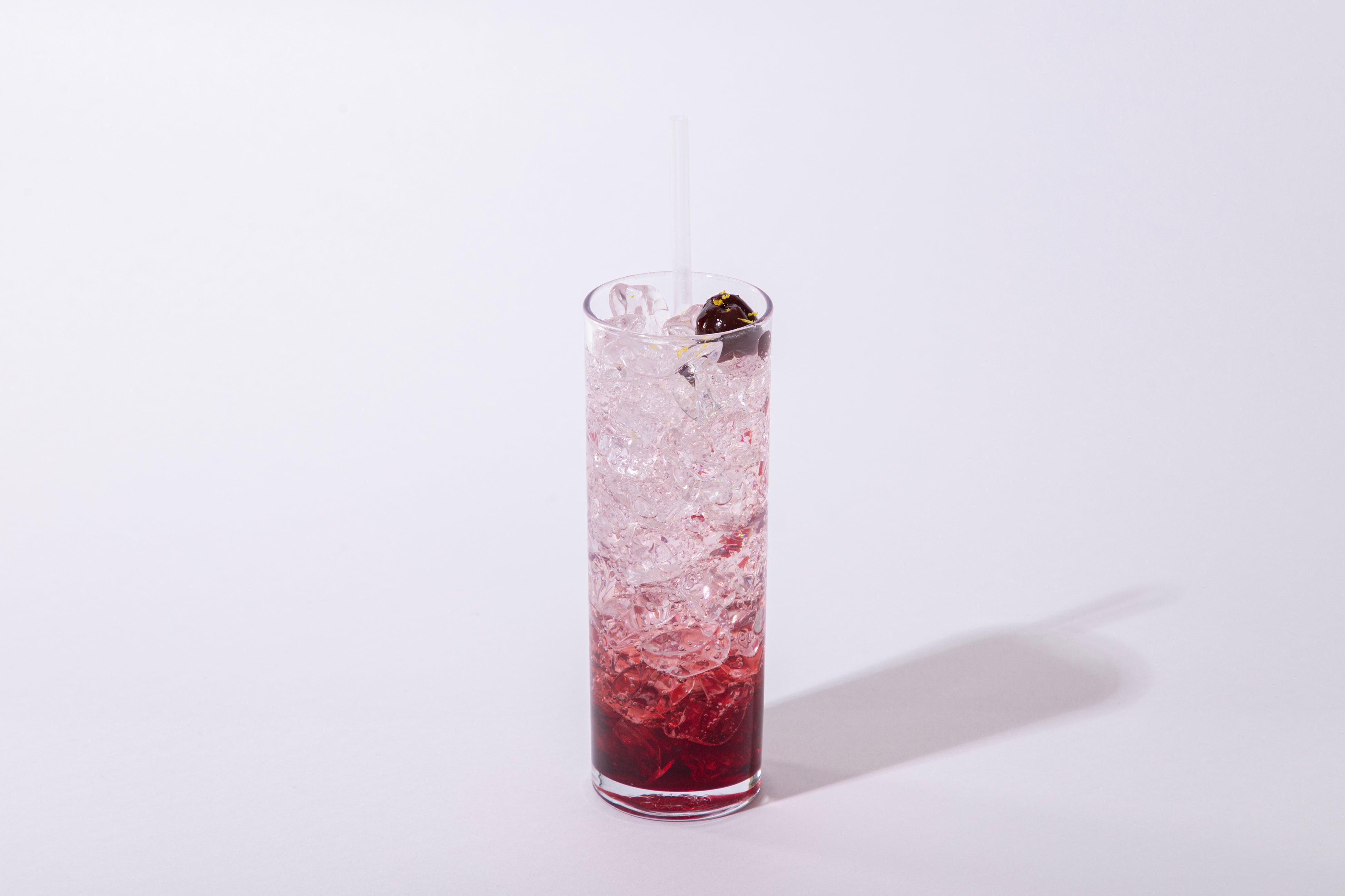 ダンテの衣装の赤をイメージしたチェリーをベースに、ビターでフルーティーな香りのシロップを合わせた微炭酸のドリンクです。
