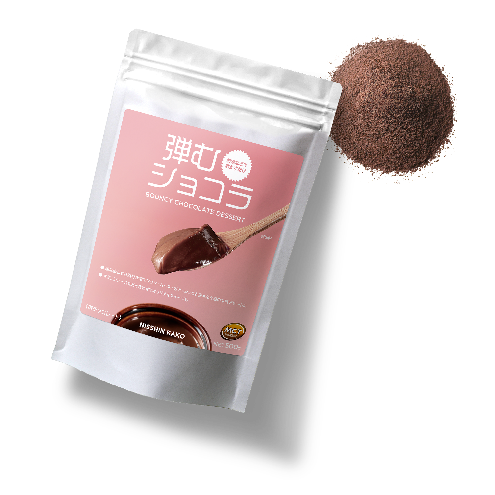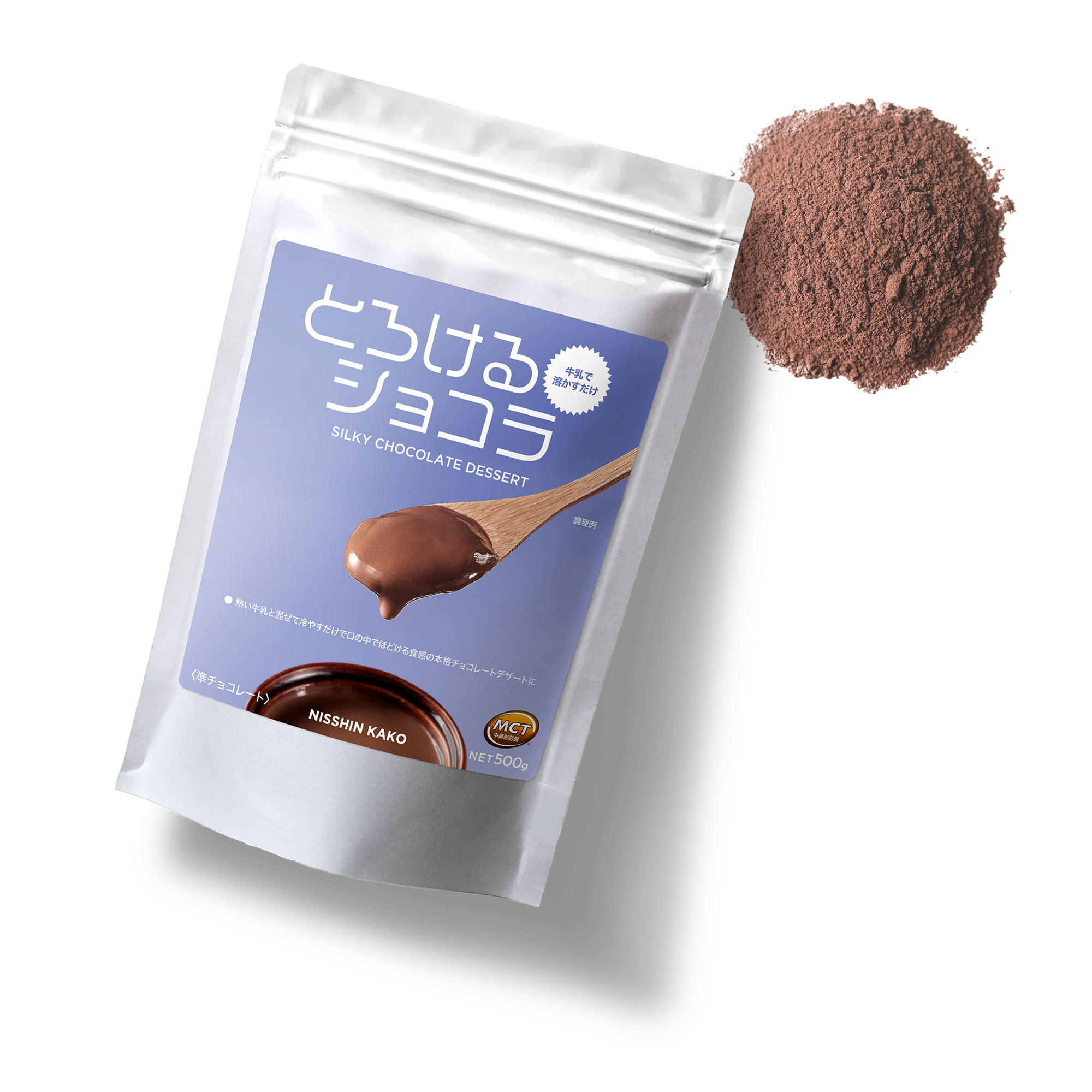 お湯や熱い牛乳で手軽に本格的なチョコレートデザートが作れる粉末です。製菓現場で求められる品質と扱いやすさ、嚥下機能に不安のある方にもおいしく召し上がっていただける設計を両立しました。