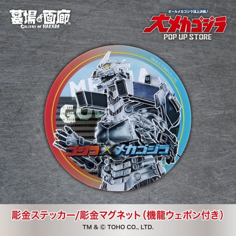 彫金ステッカー・マグネット(メカゴジラ1974)・彫金ステッカー・マグネット(機龍ウェポン付き)/ステッカー各1,375円(税込)、マグネット各1,595円(税込)