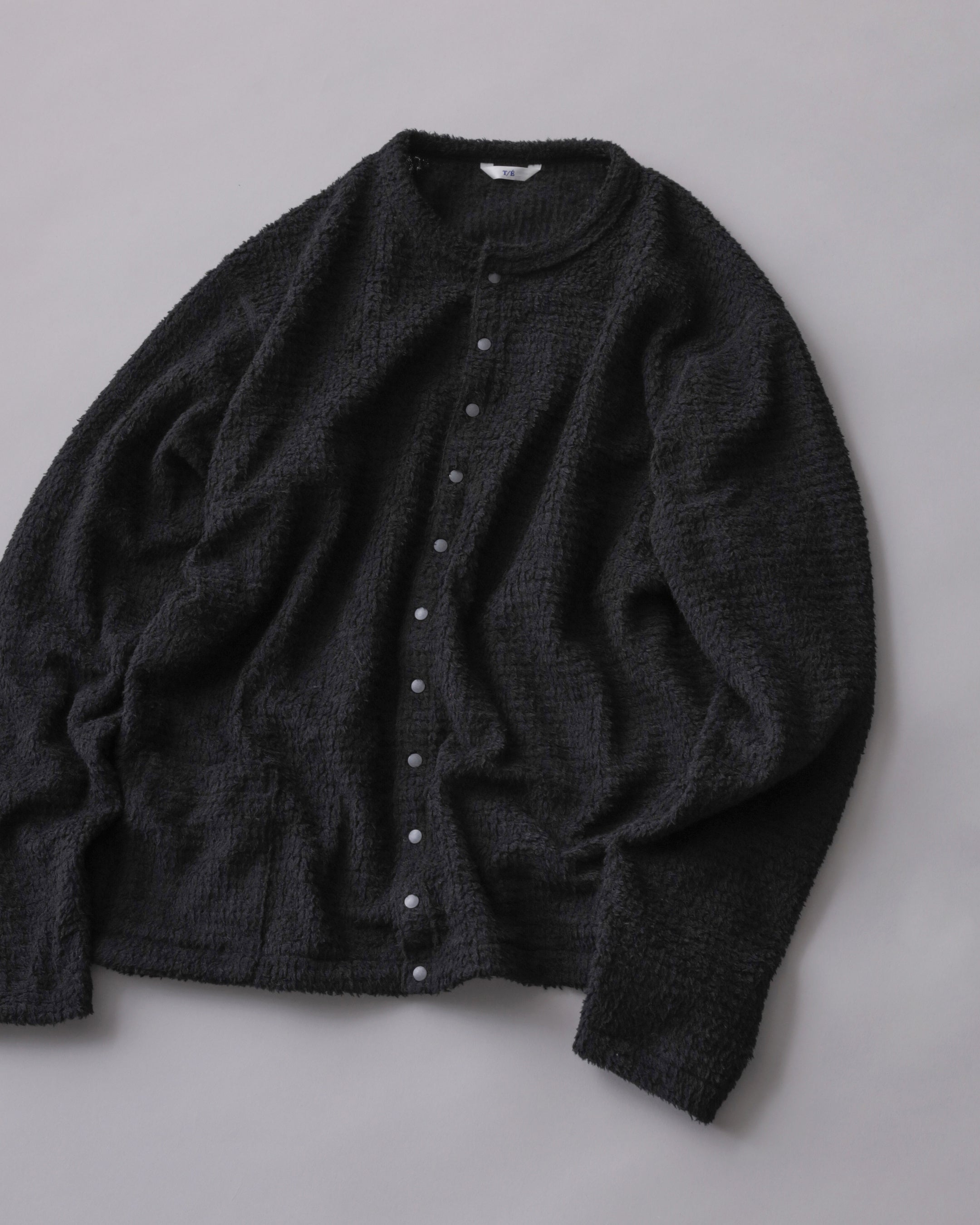 オーセンティックなボタンカーディガンに、通気性と保温性が特徴のポーラテック・アルファダイレクトを採用。肩線を後ろにし、さまざまな人の肩傾斜にあうProduct Twerlveらしいパターンを取り入れている。
