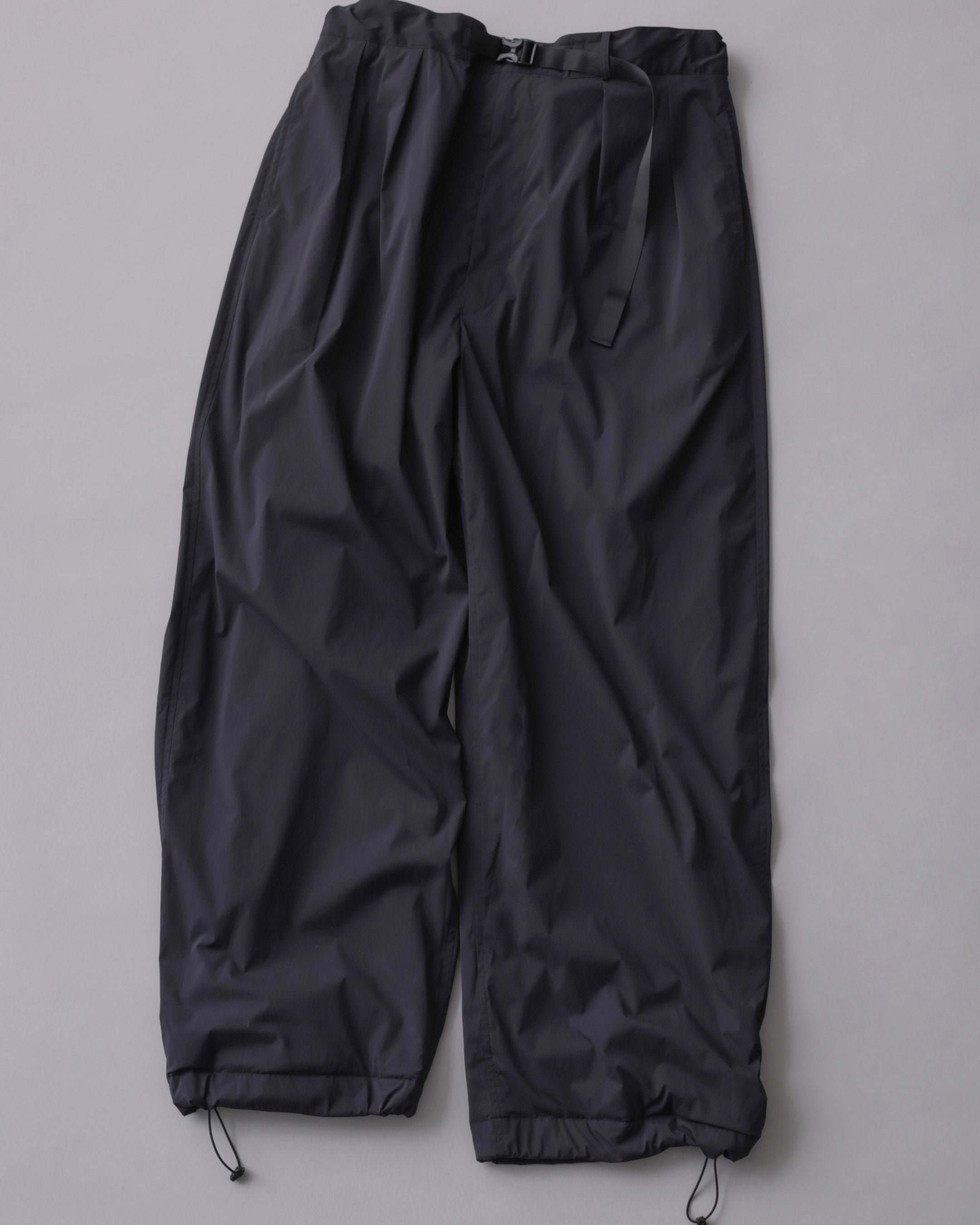 フランス軍の名作パンツであるM52をT/Eのフィルターを通して再解釈。表地にはコーデュラナイロンを使用したストレッチタフタを用いて、マットな表情とストレッチ感をもたらした。裏地のOcta(R)︎アクティブインサレーションによって軽量かつ高い通気性と速乾性、保温性を誇る。前見頃に深めの2タックを施し、膝にボリュームを持たせるパターンを取り入れ、着用時の快適な動きをサポート。袖口のスピンドルによって機能的なサイズ、シルエット調整が可能となっている。ウエスト部分がアジャスターバックル仕様になるなど、冬の都市生活において最適ともいえる一本に仕上げた。