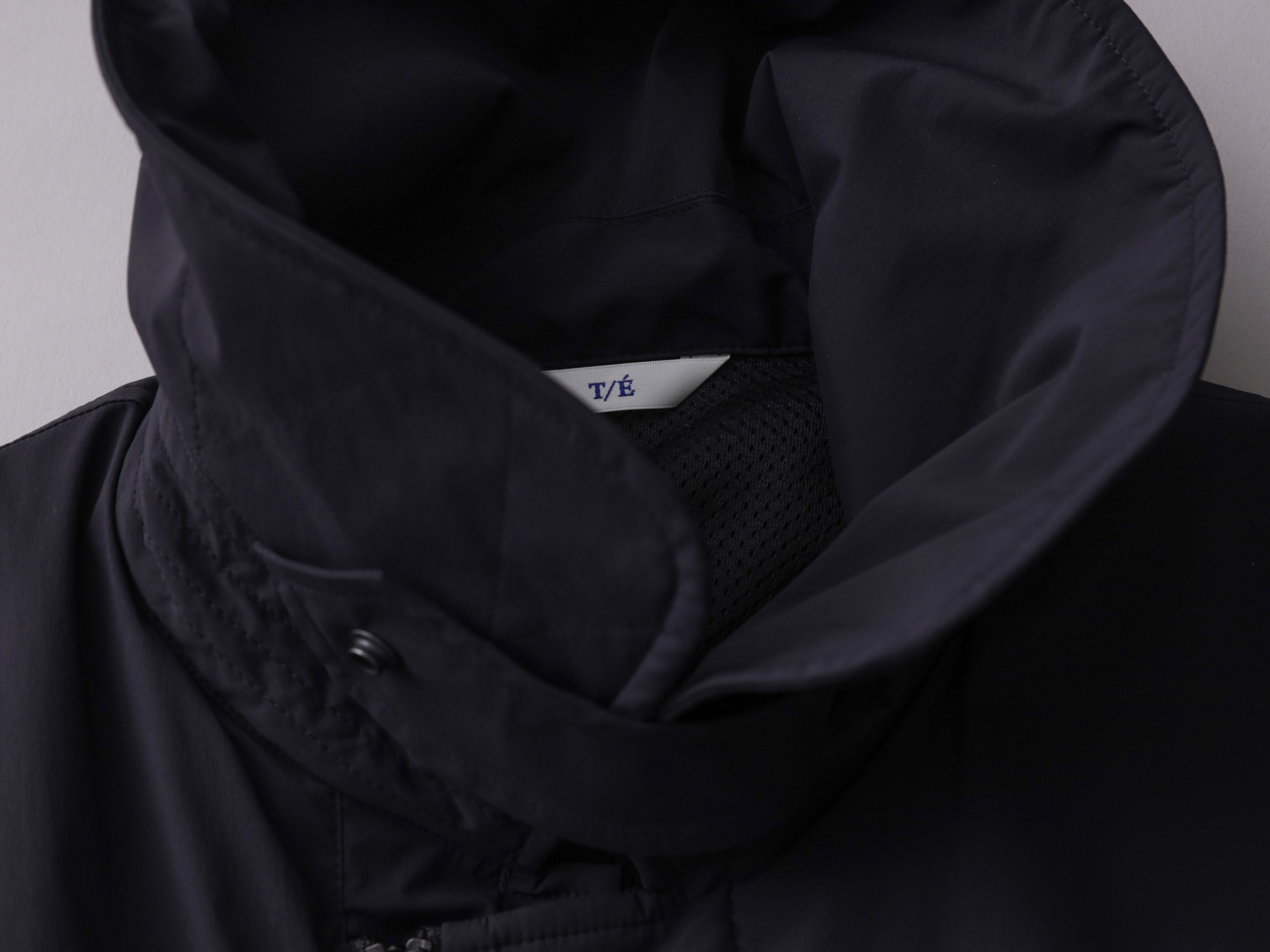 フランス軍の1960年代のパイロットジャケットを現代的にアップデート。肘部分のタックや首周りに空間が生まれる独自のパターン、ウィンドストッパーとして機能する袖口裏に内蔵したゴムなど、機能性と快適な着心地を追求したT/Eの哲学を余すところなく落とし込んでいる。表地にはマットな表情とストレッチ感が特徴のコーデュラナイロンストレッチ、裏地はOcta(R)︎アクティブインサレーションを使用。撥水性と防風性、高い保温性を実現。フレンチヴィンテージの名作が現代のモダンウエアに生まれ変わった。