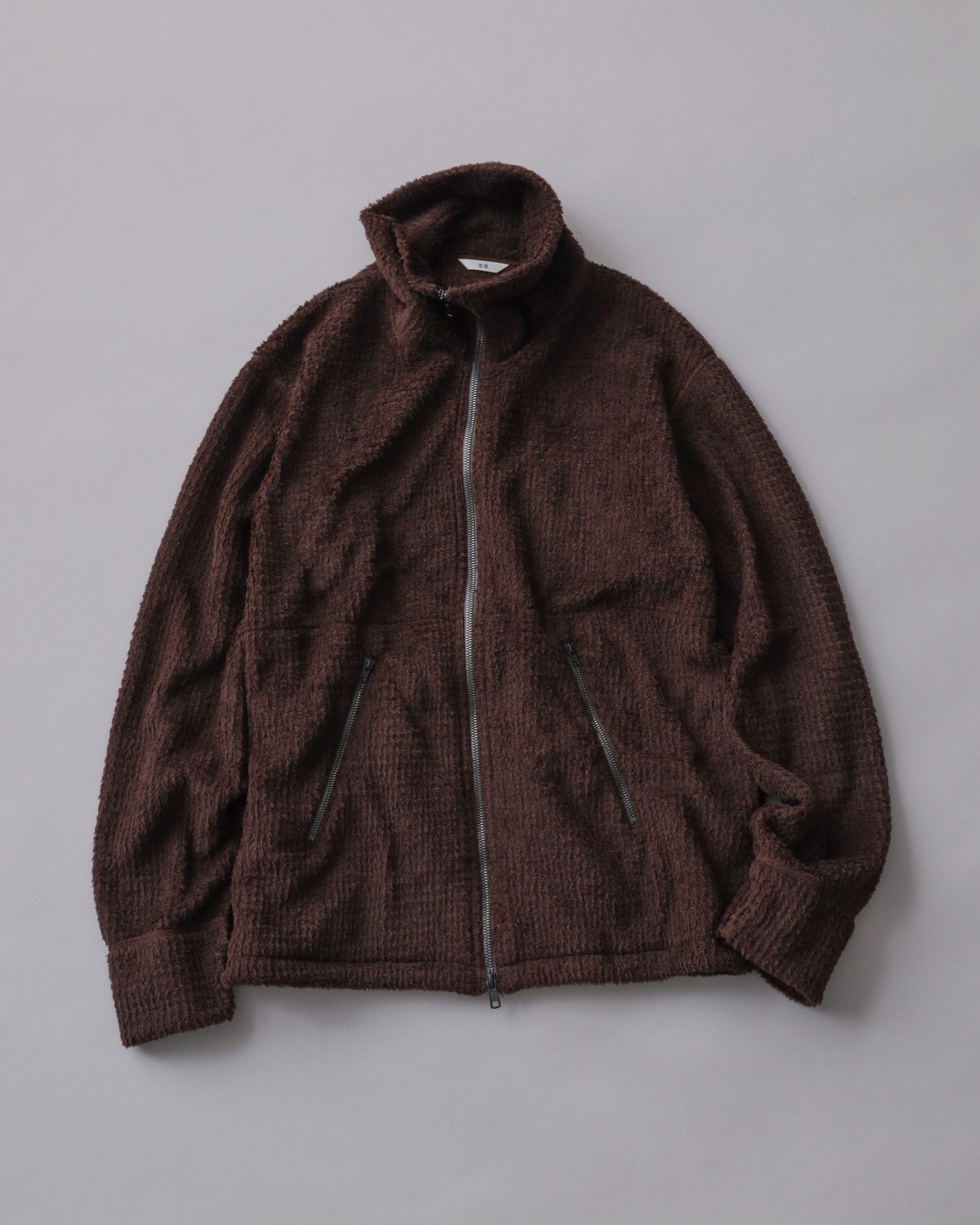 T/Eの思想をフランス軍のフリースジャケットに反映した一着。メッシュ素材ならではの軽量性、通気性と保温性が特徴の最新飲茶レーション素材であるポーラテック・アルファダイレクトを採用することで、洗濯機でも洗濯可能で、持ち運びにも適した一枚に仕上がっている。首周りは高さがありながら顔に生地が当たらないように、程よい空間とホールド感が生まれるパターンを考案。カーディガン同様、肩線を後ろにし、さまざまな人の肩傾斜に合うパターンとハギ目のフラットシーマー仕様が快適な着心地を実現している。