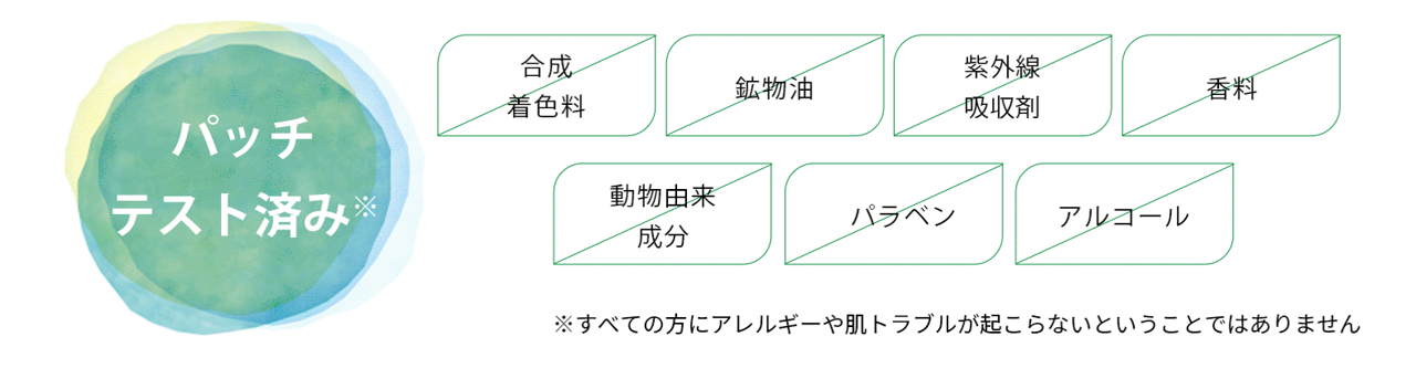 お肌の美しさを妨げるものを取り入れたくないから、7つの無添加で肌へのやさしさにこだわりました。さらに、安心のパッチテスト済み商品です。
