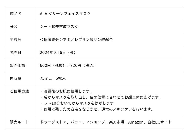※1 ALA配合の毛穴ケアシートマスクとして(SBIアラプロモ調べ:2024年6月)
