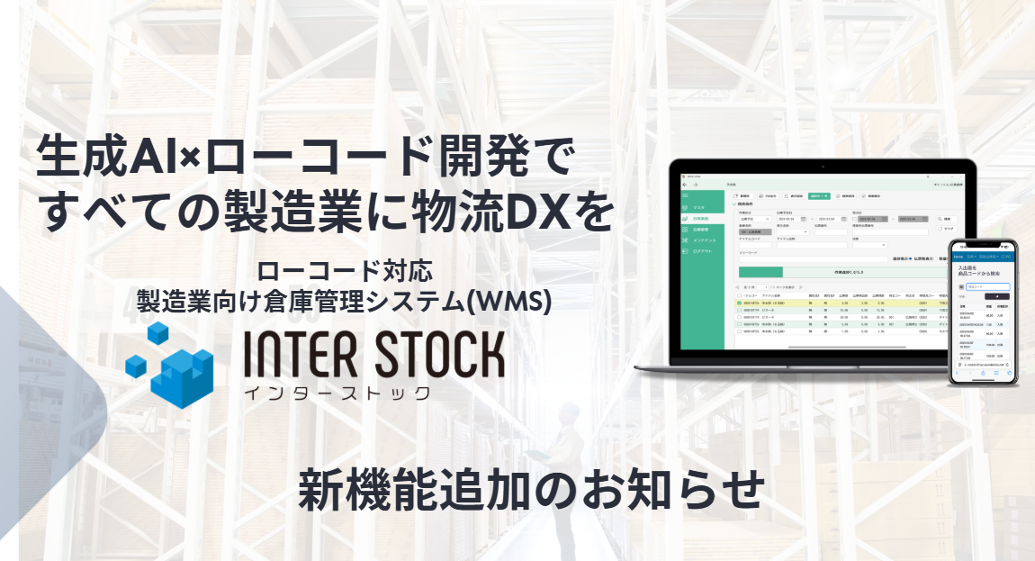 製造業向けローコード対応倉庫管理システム(WMS)「INTER-STOCK(インターストック)」を提供する株式会社オンザリンクス(本社:広島県広島市中区、代表取締役:東 聖也)は、ユーザー主導の物流DXをさらに加速する2つの新機能を追加し、2025年12月15日より提供開始することをお知らせいたします。