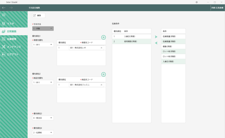 オーダー(出荷指示)に対して、複雑な在庫引当条件をユーザーが自由に設定可能